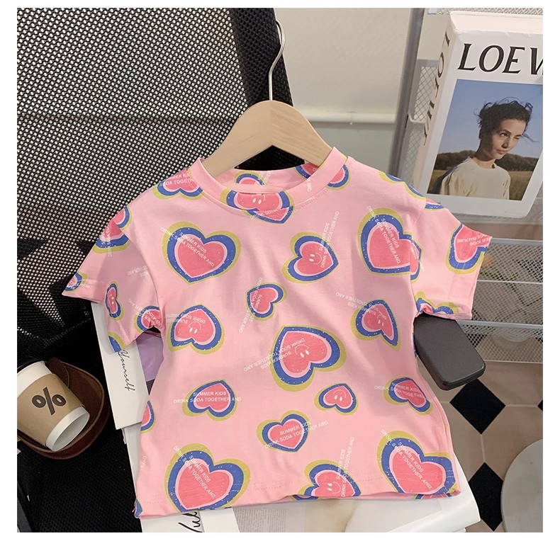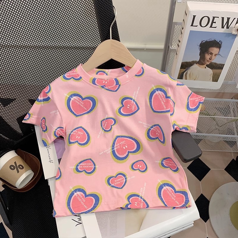 여자 티셔츠 반팔 여름 2025 새로운 아기 부드러운 반소매 탑 아기 얇은 핑크 캐주얼 셔츠스토어 가기