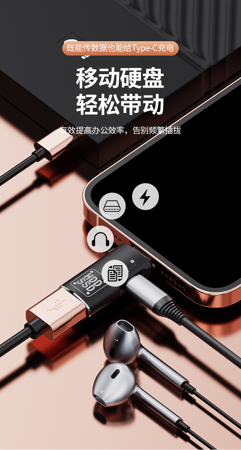 U 디스크 데이터 전송을 위한 소형 어댑터 Type-c - Lightning 고속 연결 충전식 헤드폰으로 음악 듣기스토어 가기