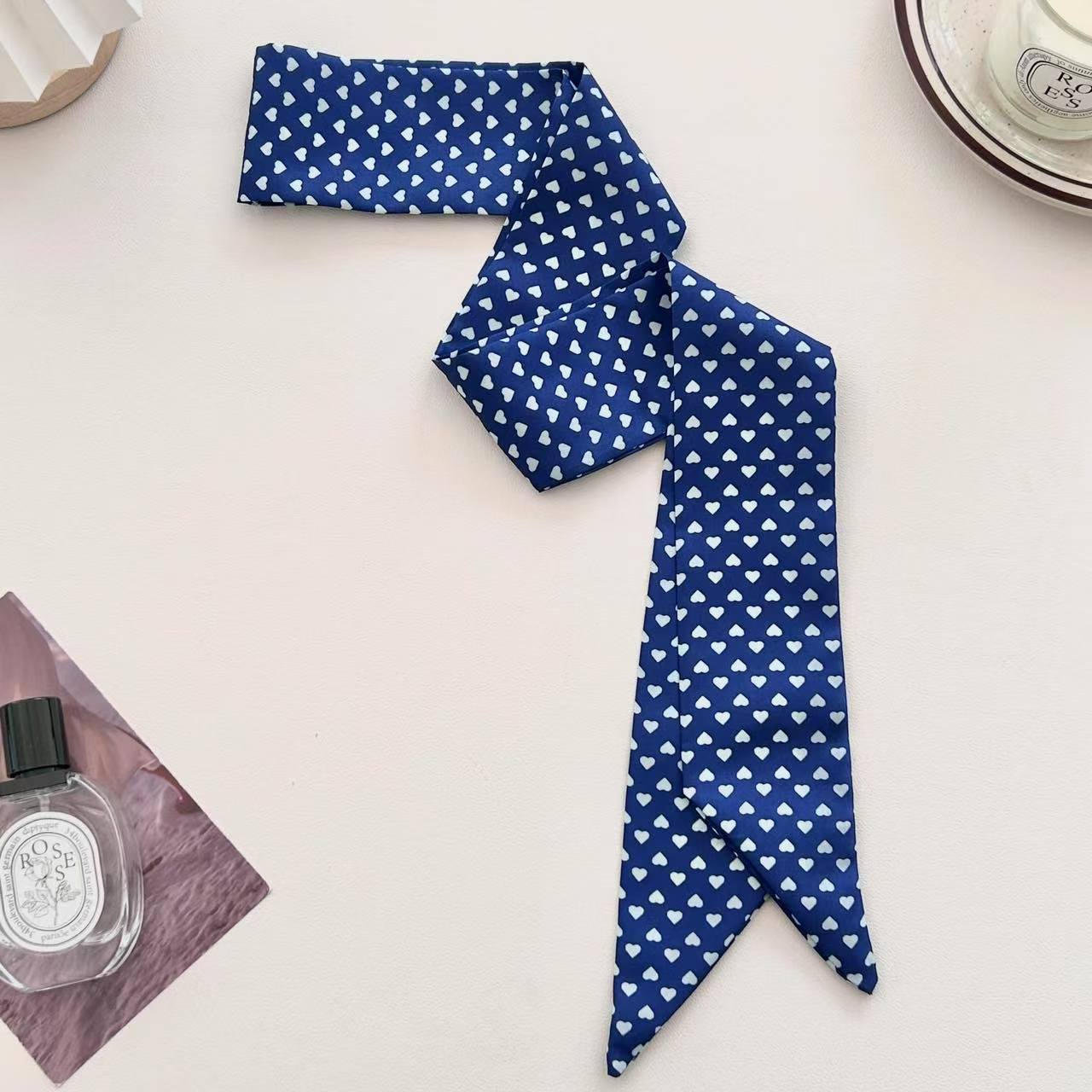 한국식 러브 도트무늬 롱 실크 스카프, 복고풍 다기능 머리끈, 리본, 우아하고 다재다능한 미백 스카프스토어 가기