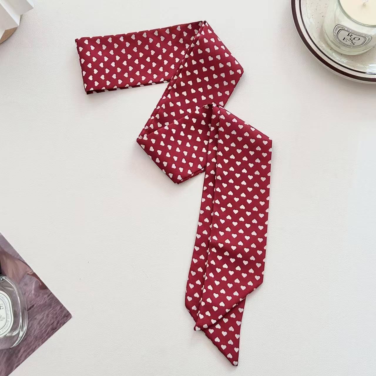 한국식 러브 도트무늬 롱 실크 스카프, 복고풍 다기능 머리끈, 리본, 우아하고 다재다능한 미백 스카프