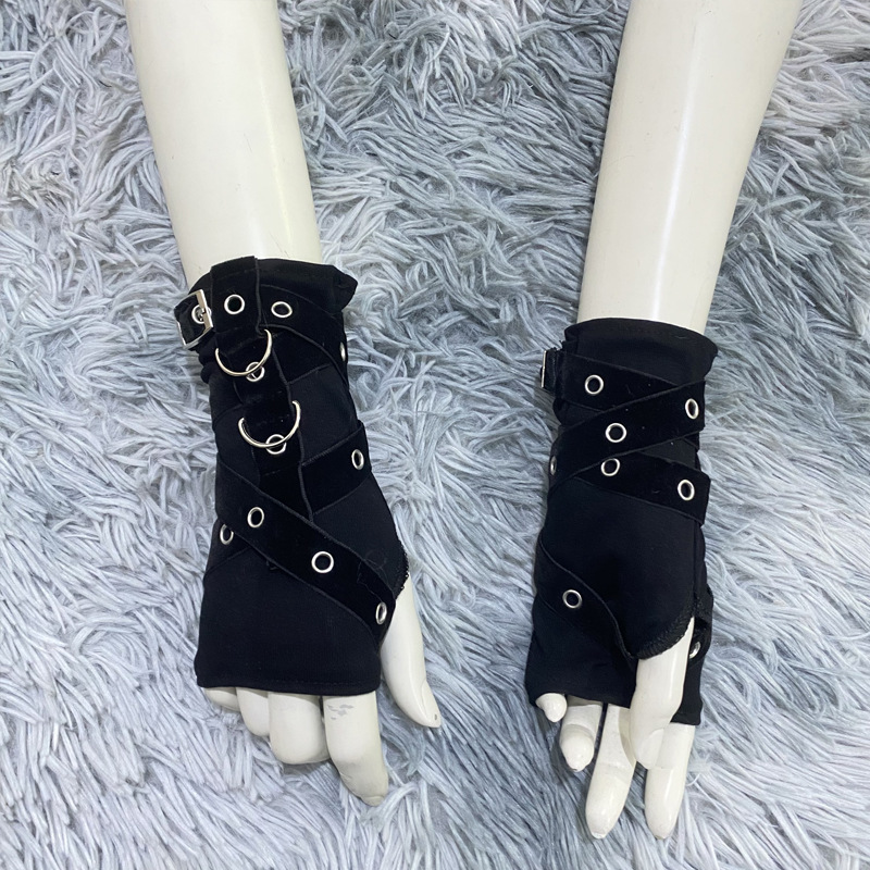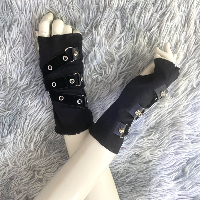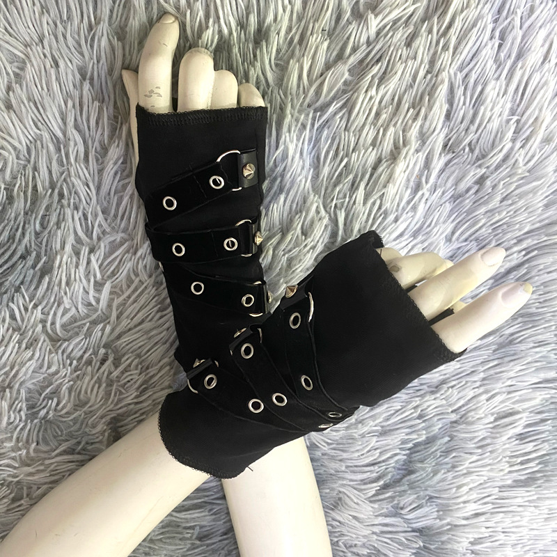 여성용 다크 하프 핑거 장갑, 고딕 블랙 핑거리스 숏 슬리브, 하라주쿠 핫걸 개성 니치 Y2K스토어 가기