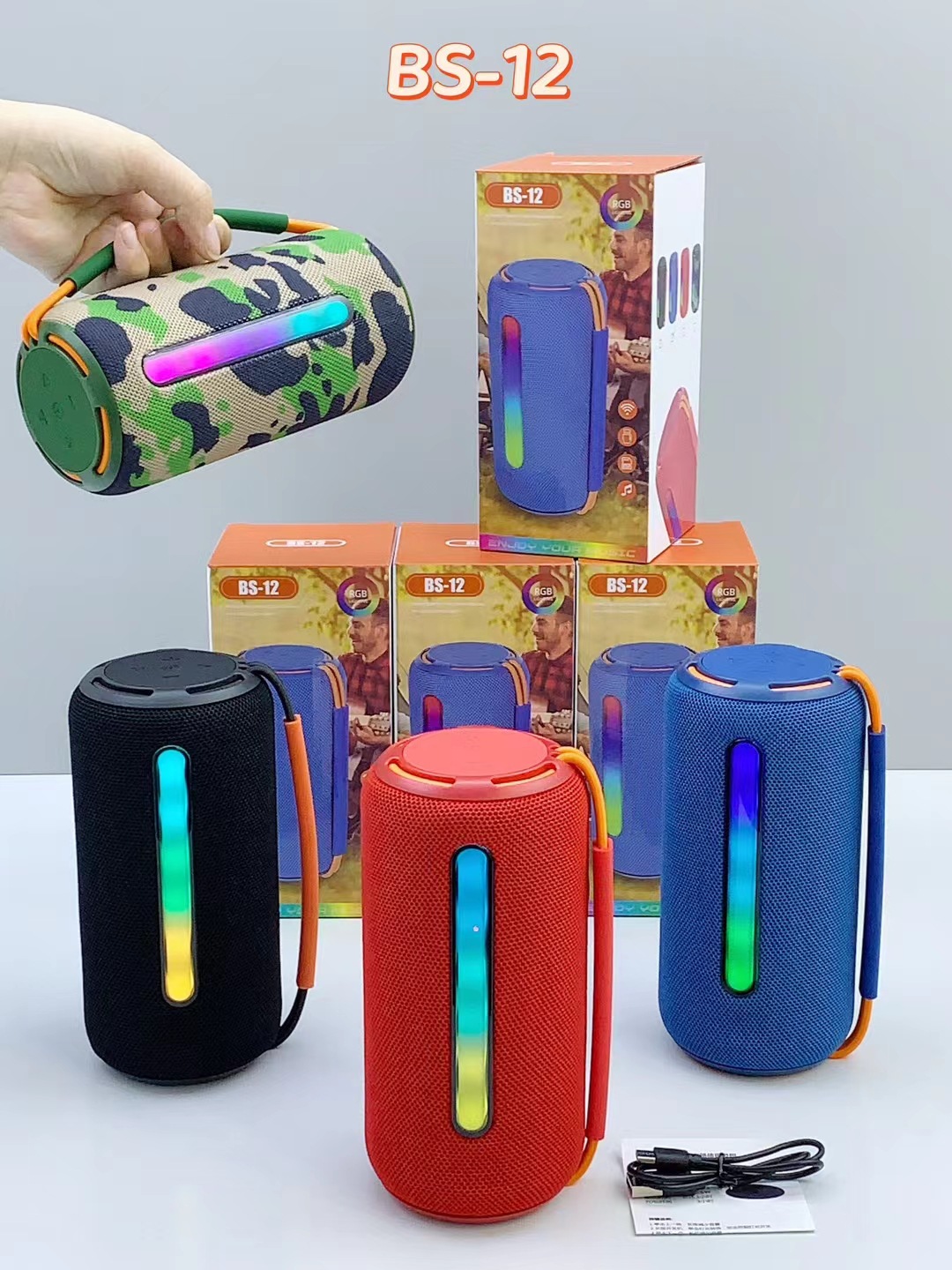 BS-12 새로운 블루투스 스피커 야외 휴대용 듀얼 스피커 서브 우퍼 데스크탑 다채로운 빛 휴대용 선물 오디오스토어 가기