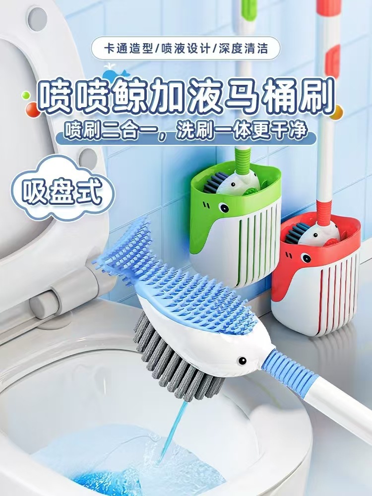 새로운 실리콘 흡입 컵 스프레이 고래 플러스 액체 변기 브러시, 바닥이 없는 욕실 변기 청소 도구스토어 가기
