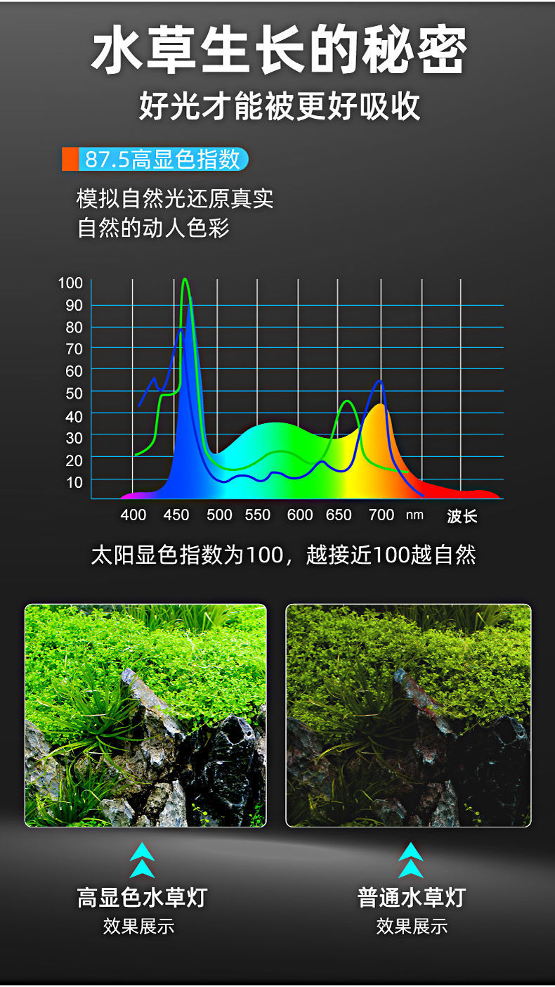 • 새로운 6열 전체 스펙트럼 청색 및 백색광(수생 식물의 96% 사용)