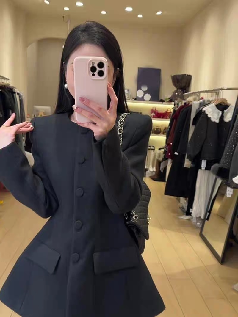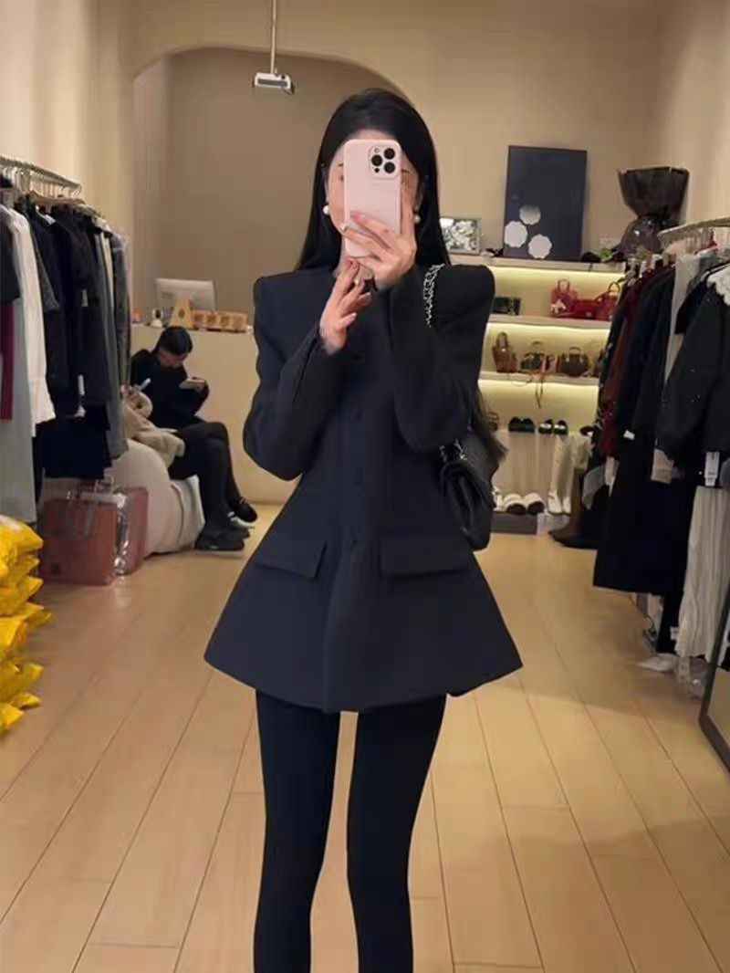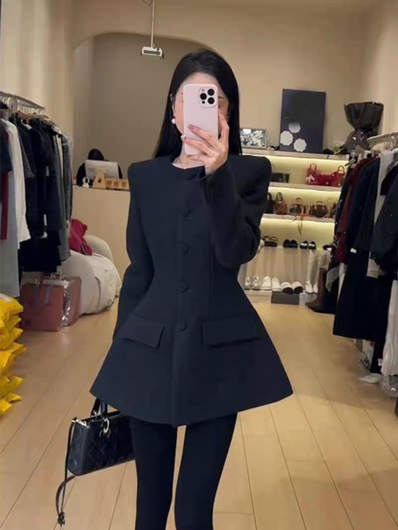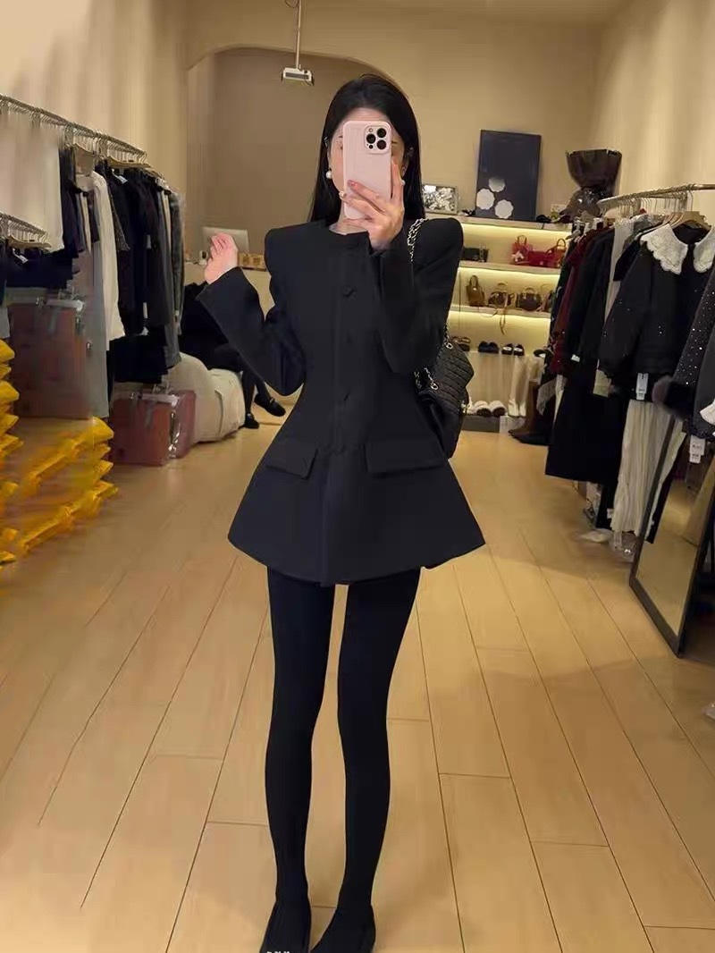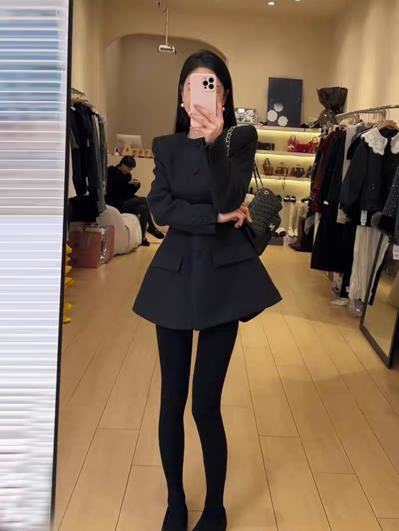 햅번 스타일 복고풍 블랙 정장 모직 코트 여성 2024 겨울 슬림 작은 향기 모래시계 허리 모직 드레스스토어 가기