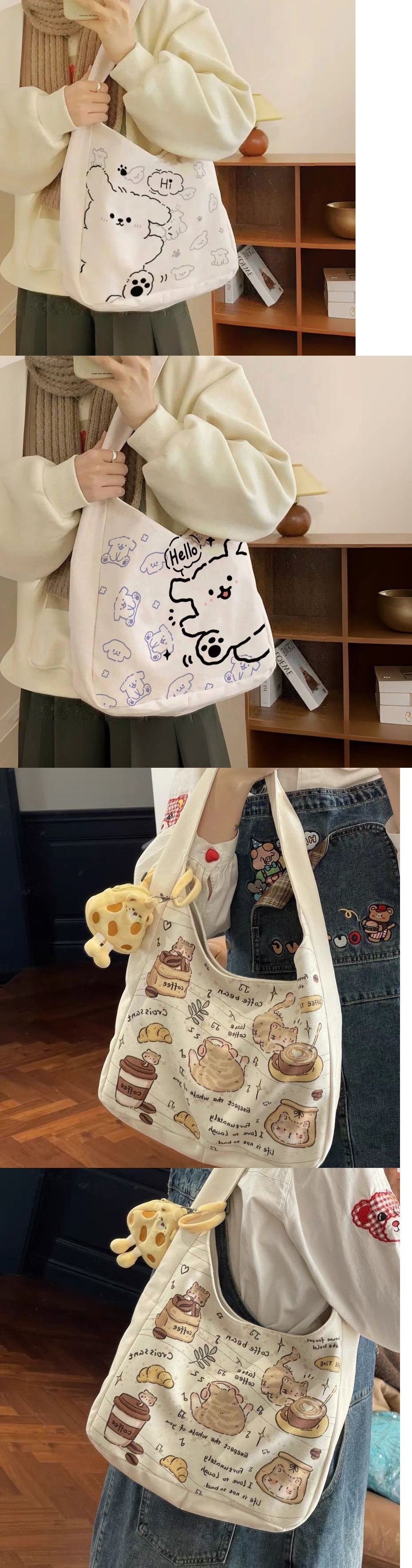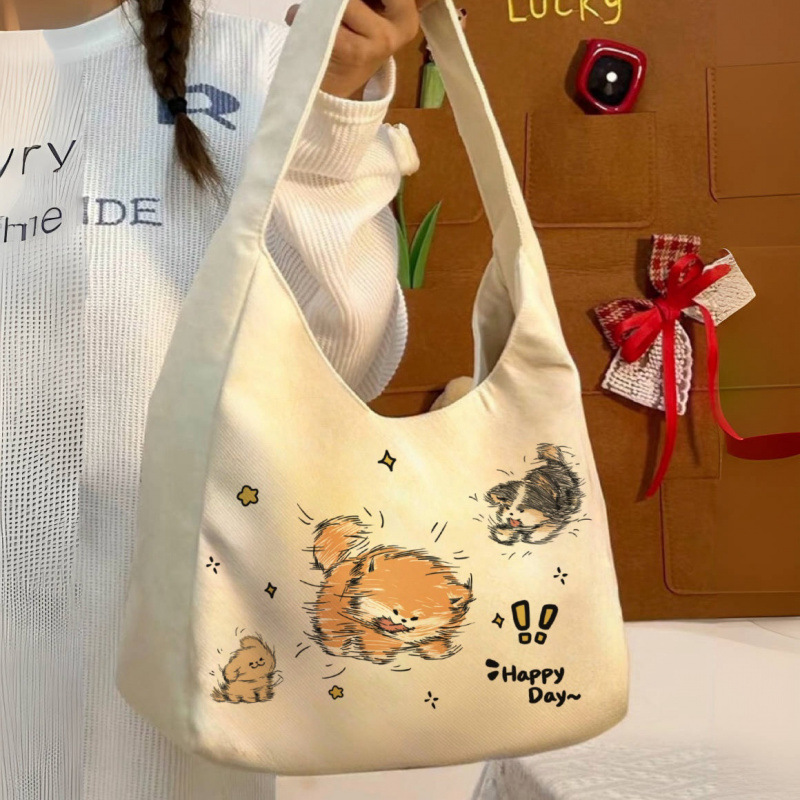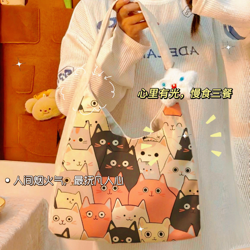 새로운 만화 고양이와 개 숄더백, 다용도 대용량 학생 캔버스 가방, 통근 토트백, 외출용 대형 컬렉션스토어 가기