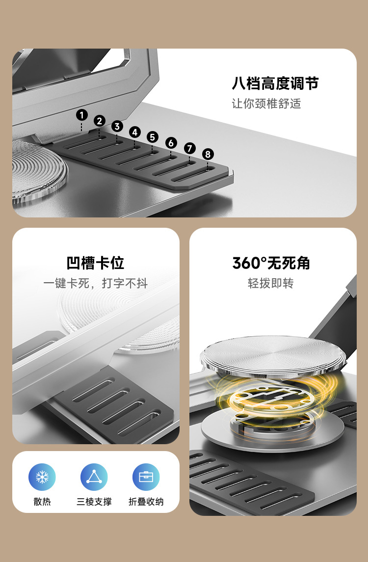 새로운 노트북 태블릿 스탠드 360도 회전 접이식 냉각 랙 모든 금속 리프팅 지원 랙