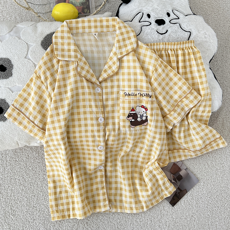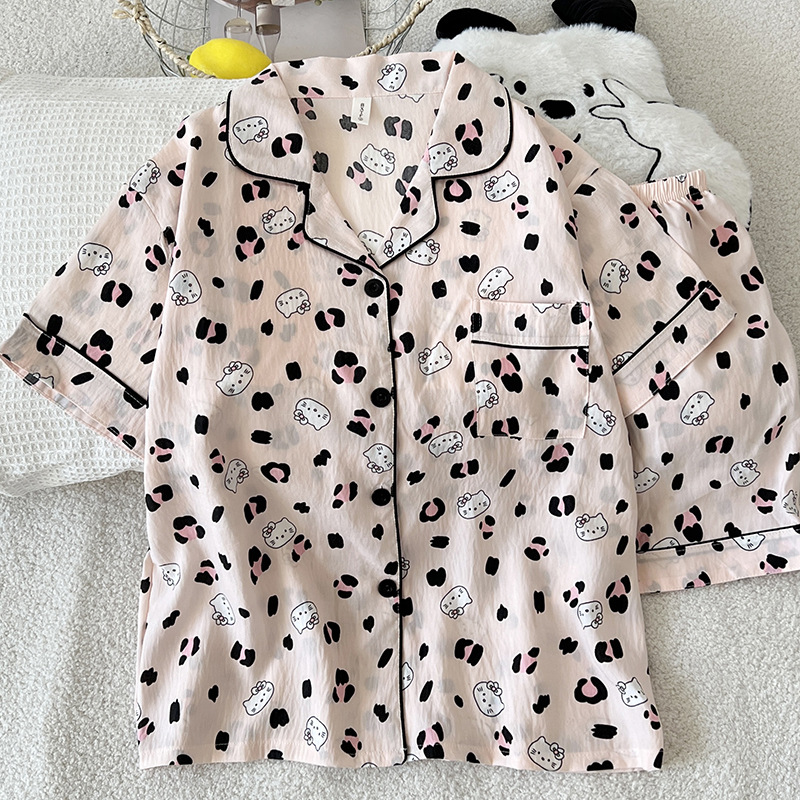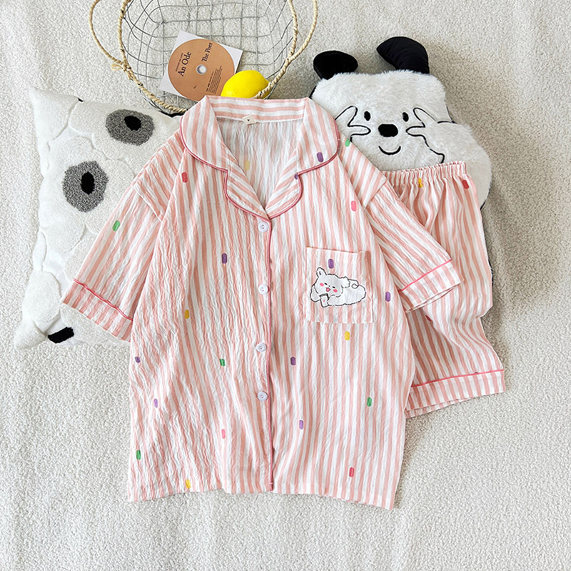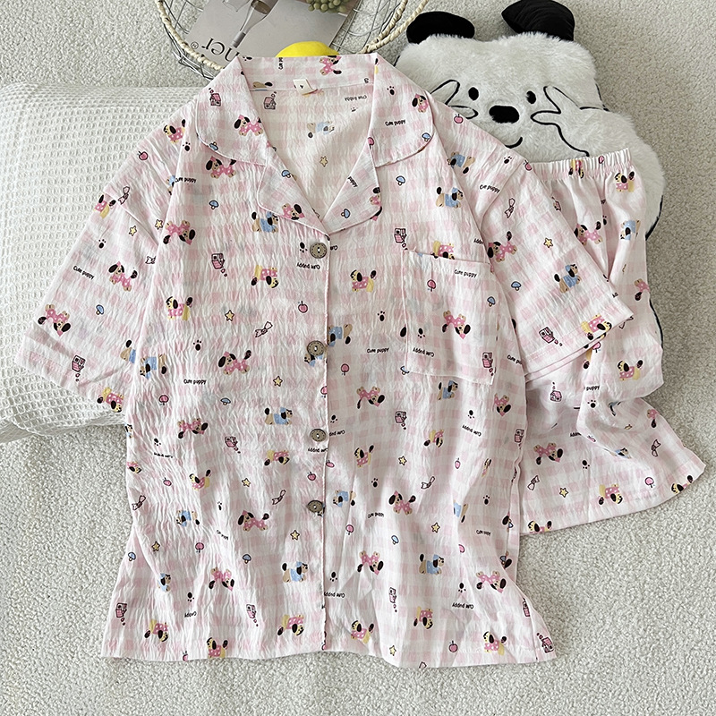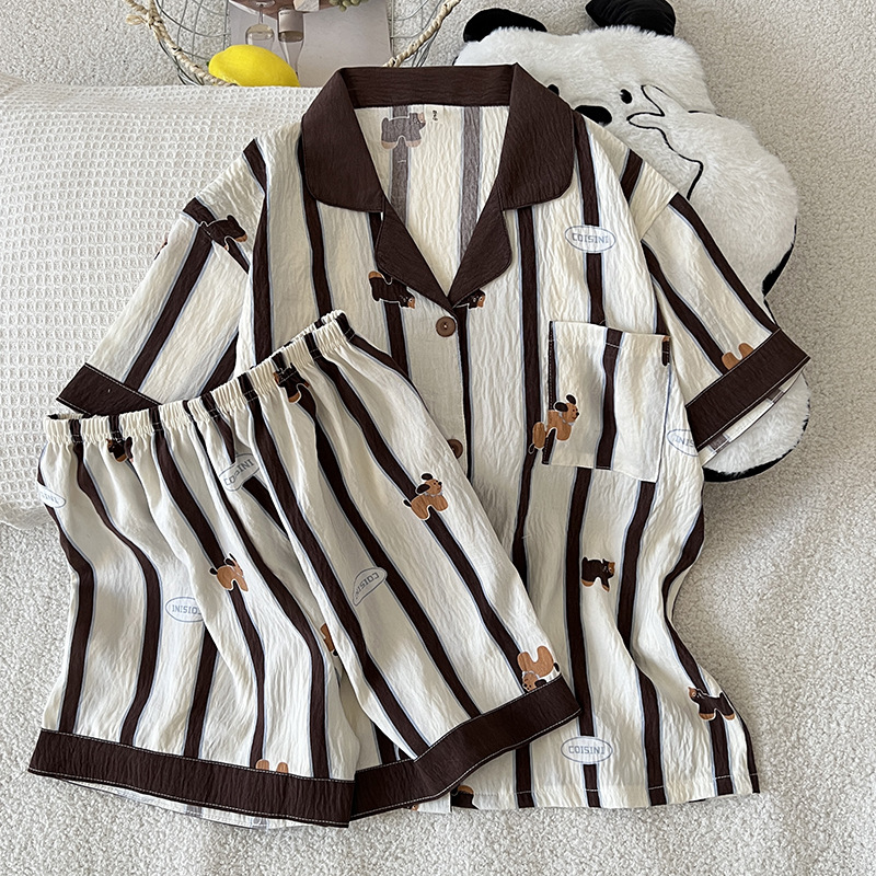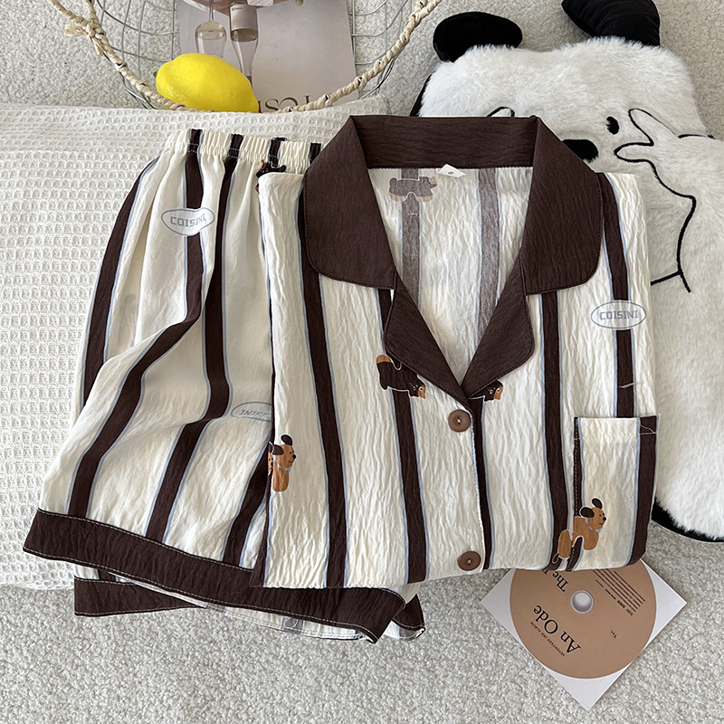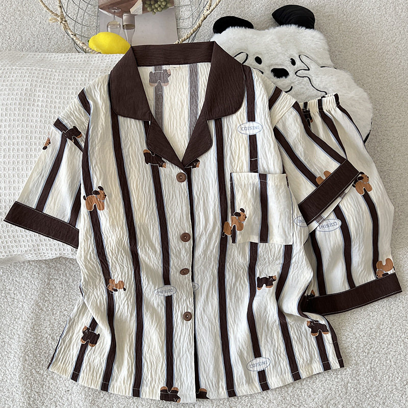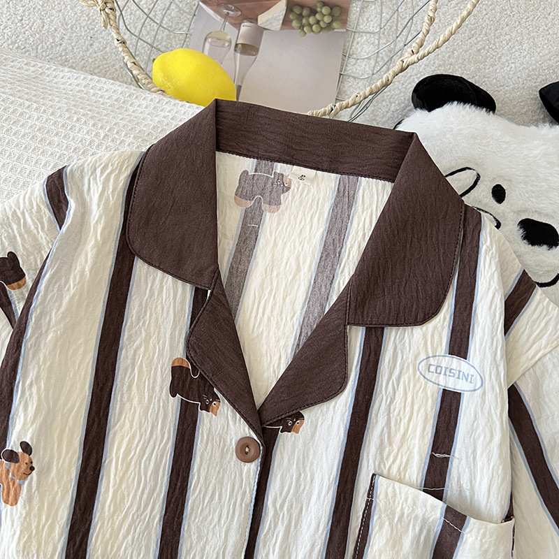 2025 새로운 클라우드 코튼 여름 새 잠옷 여성 대비 색 줄무늬 강아지 반팔 반바지 홈웨어 세트스토어 가기