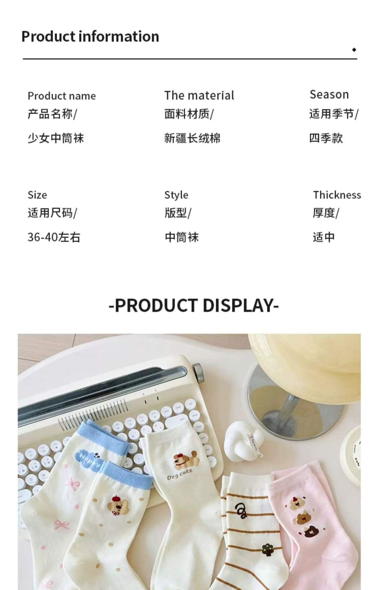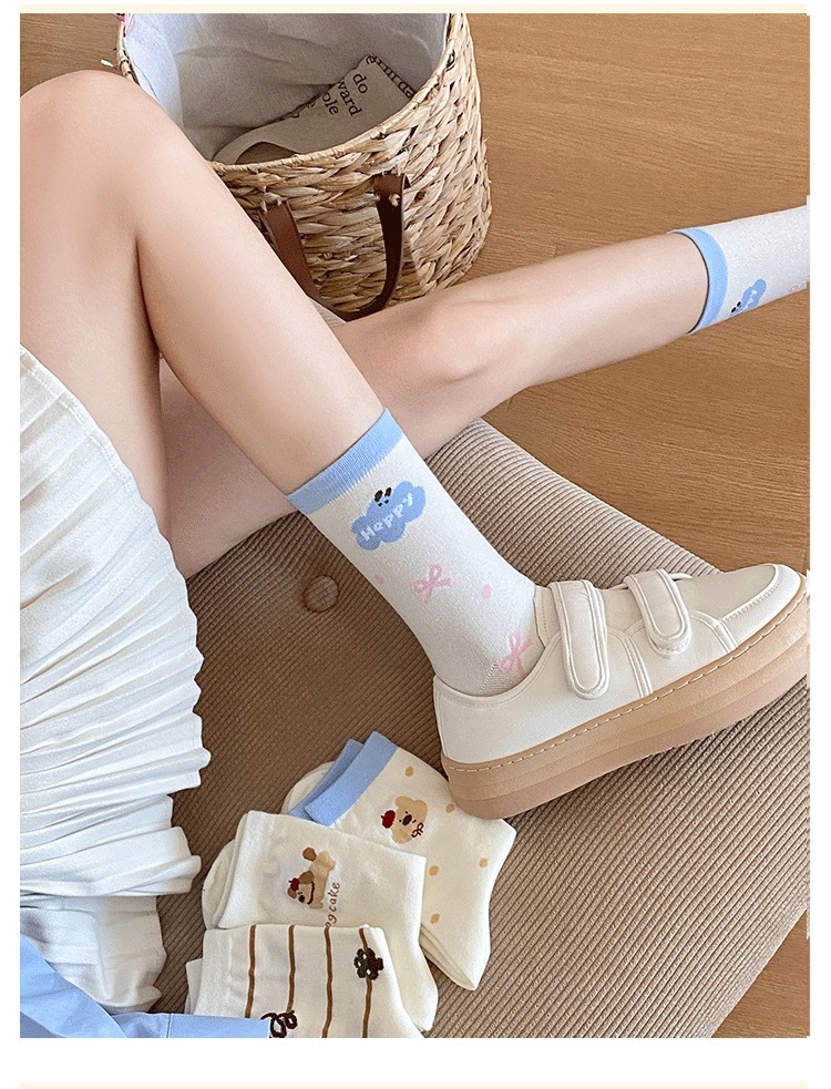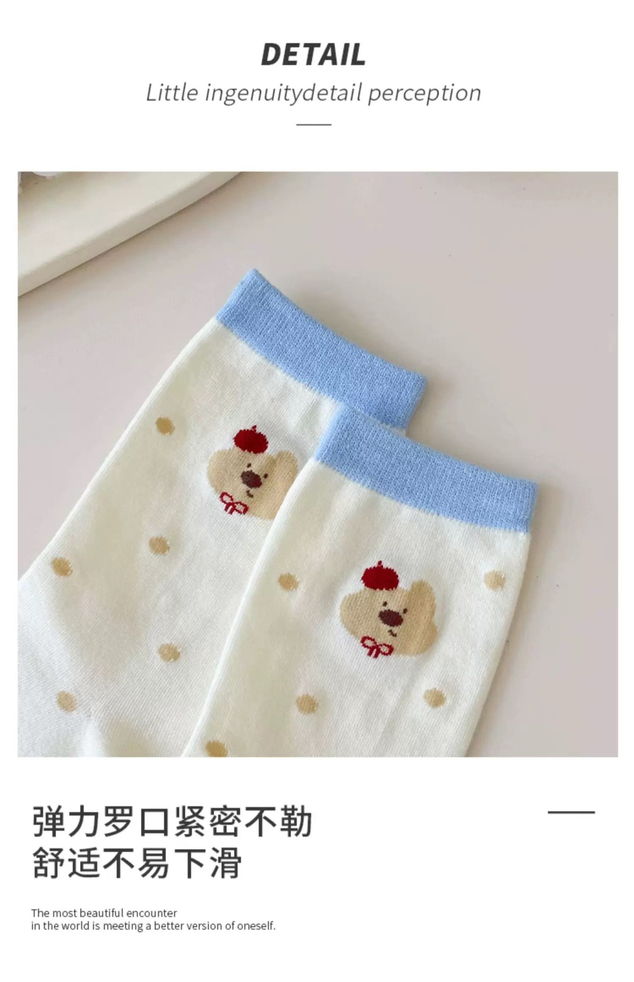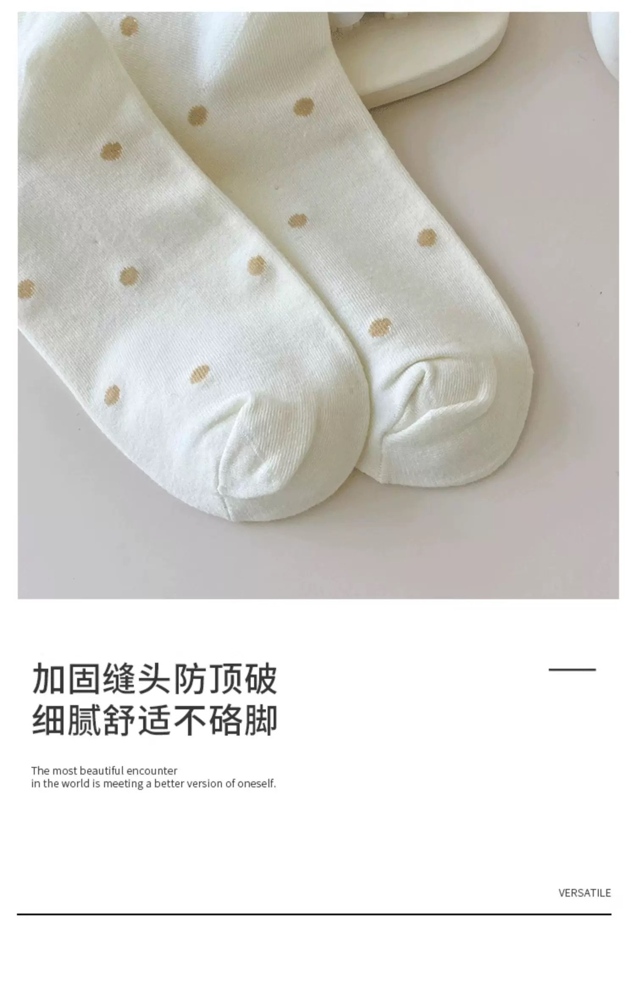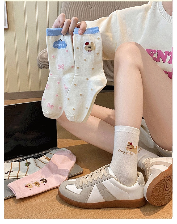 여성용 만화 양말 봄 여름 얇은 일본식 귀여운 강아지 종아리 중간 양말 대학 스타일 줄무늬 폴카 도트 뼈없는 양말