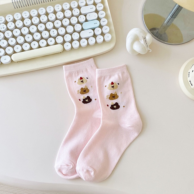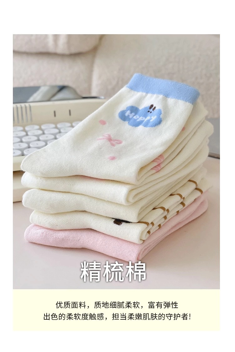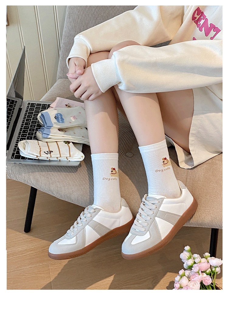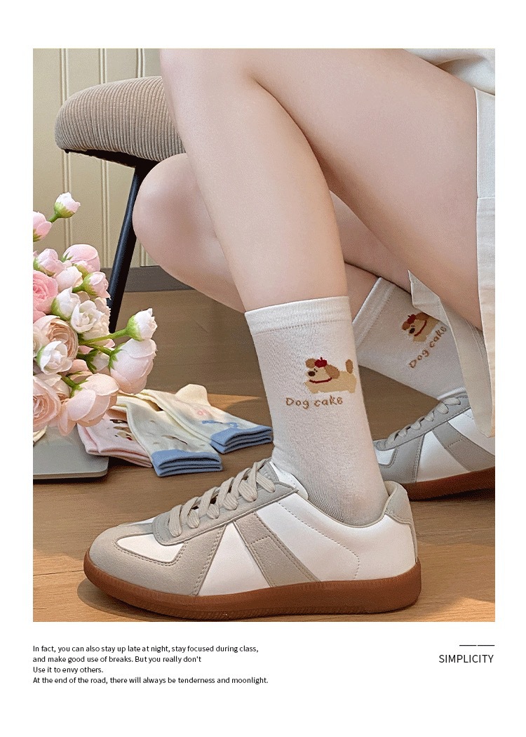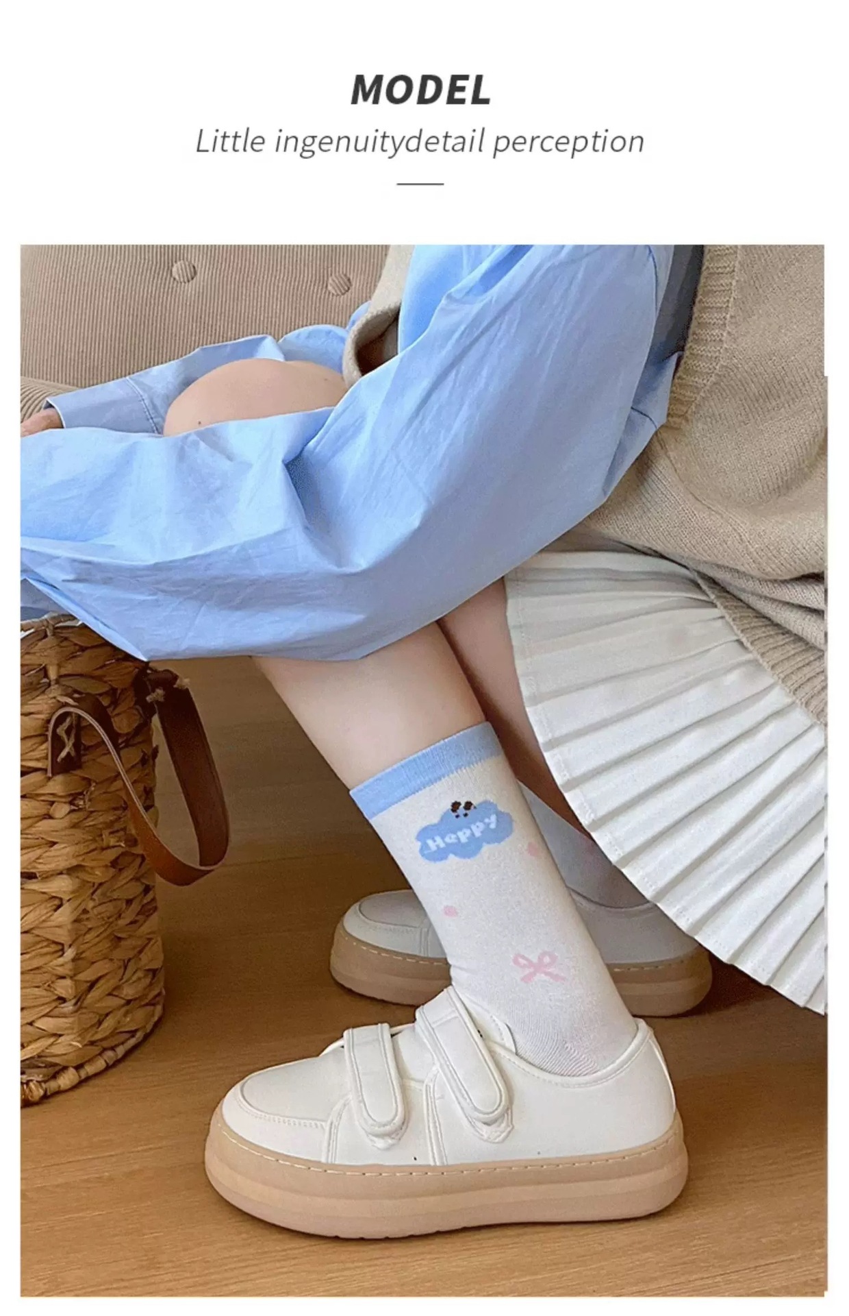 여성용 만화 양말 봄 여름 얇은 일본식 귀여운 강아지 종아리 중간 양말 대학 스타일 줄무늬 폴카 도트 뼈없는 양말