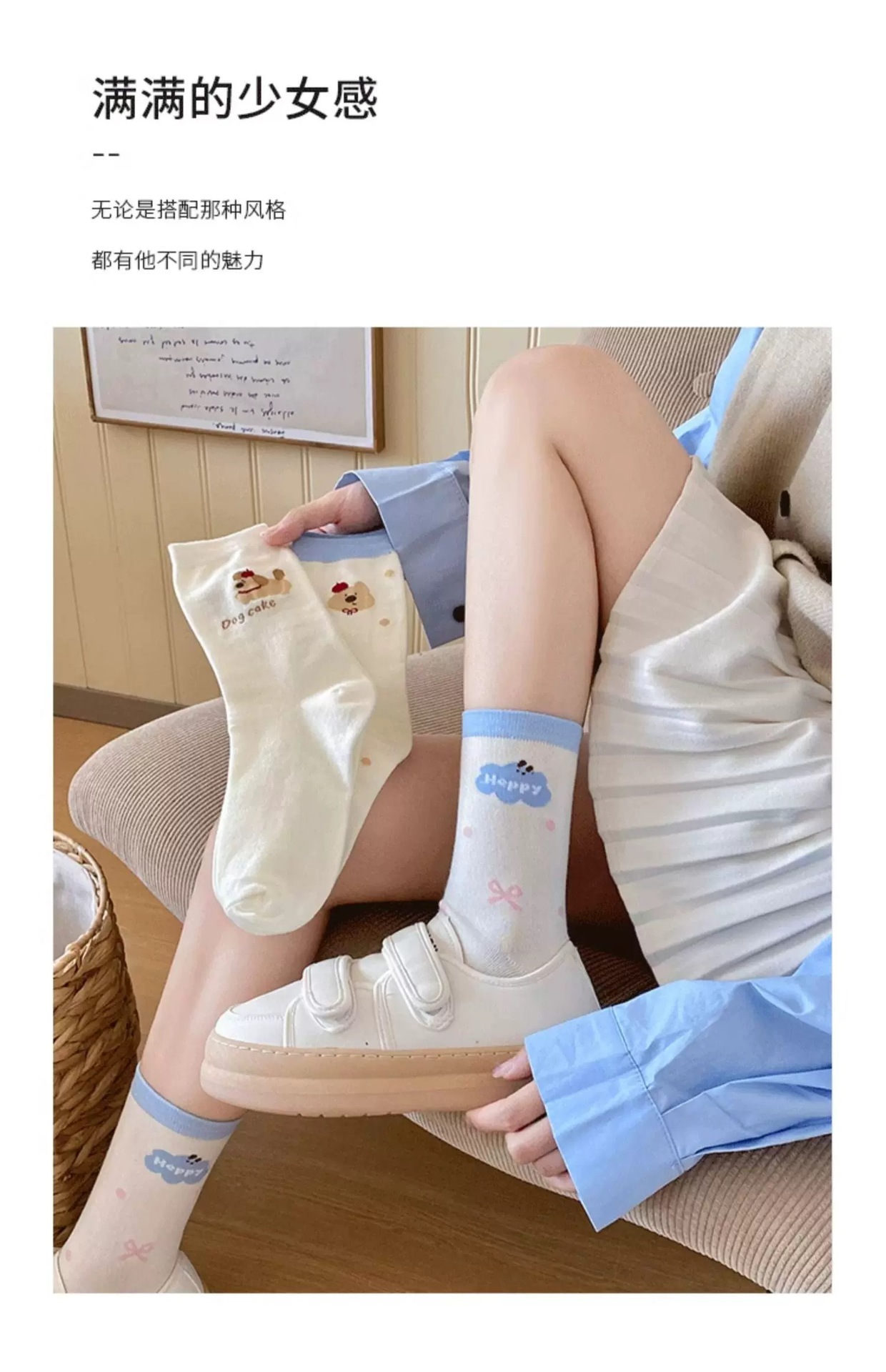 여성용 만화 양말 봄 여름 얇은 일본식 귀여운 강아지 종아리 중간 양말 대학 스타일 줄무늬 폴카 도트 뼈없는 양말스토어 가기