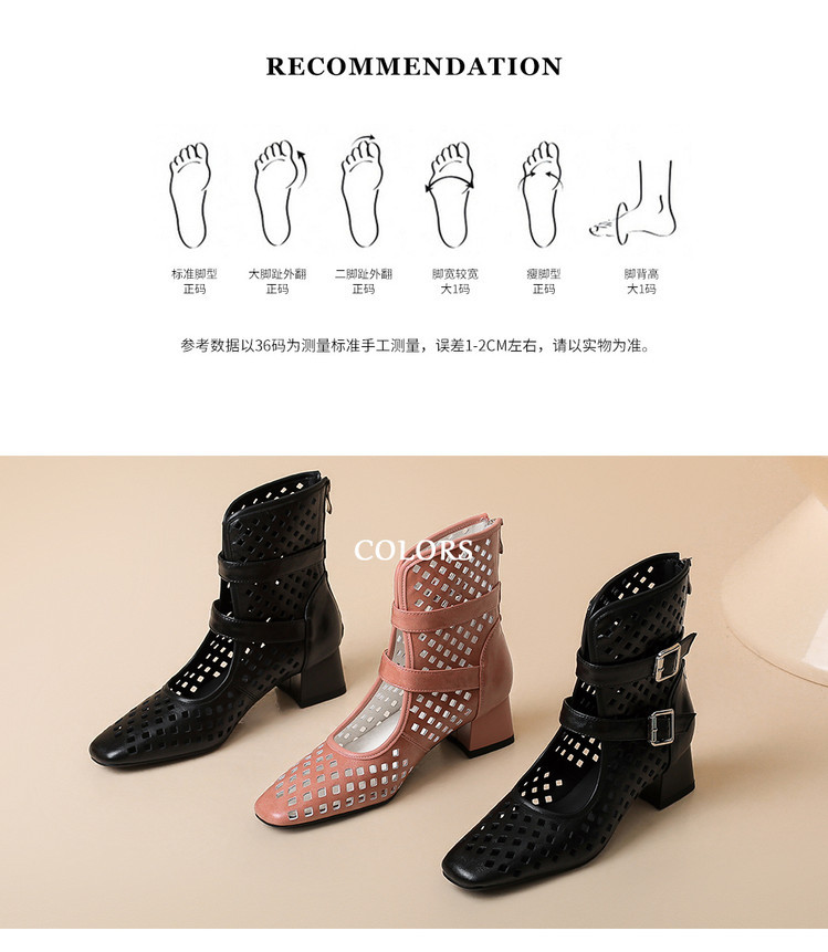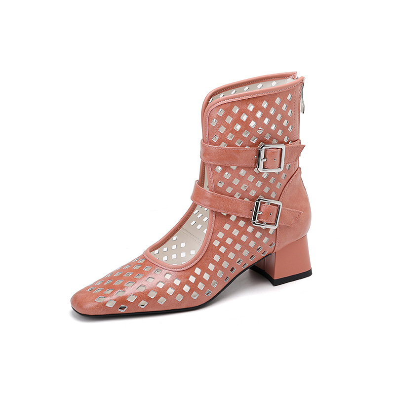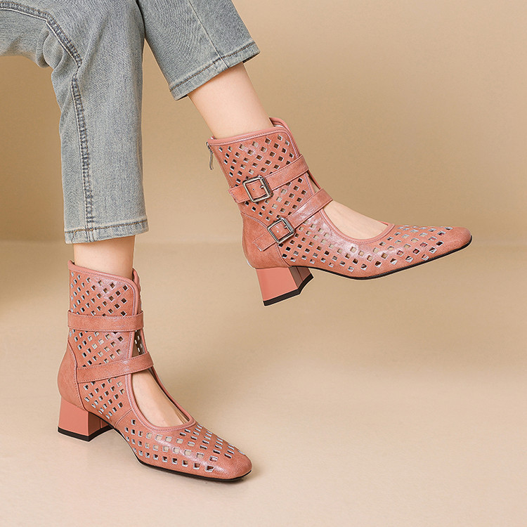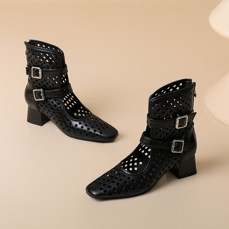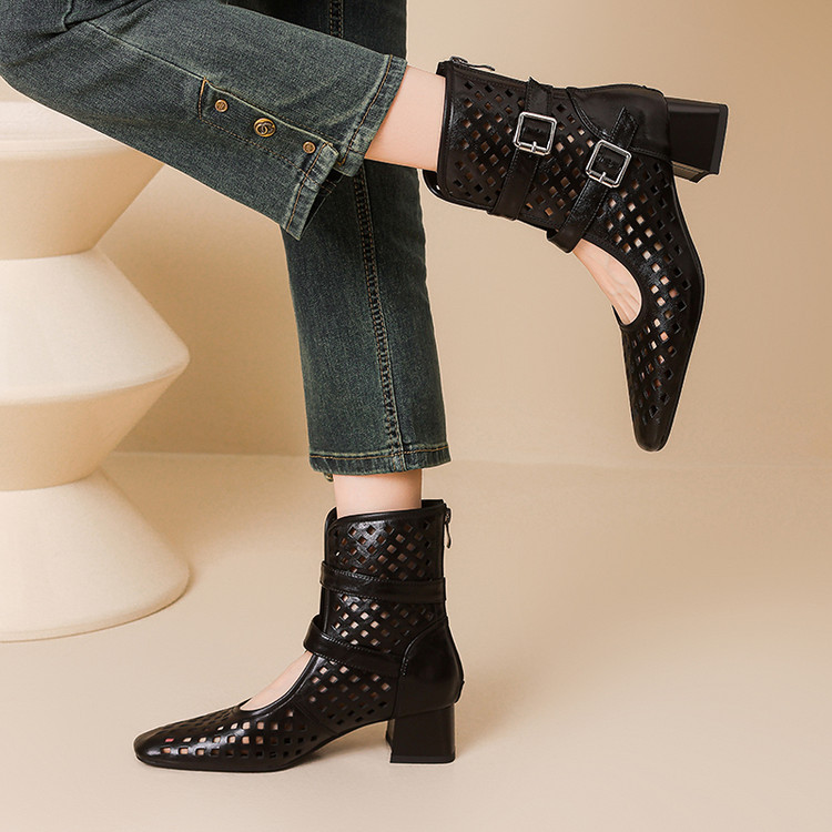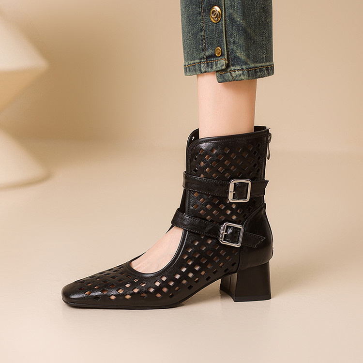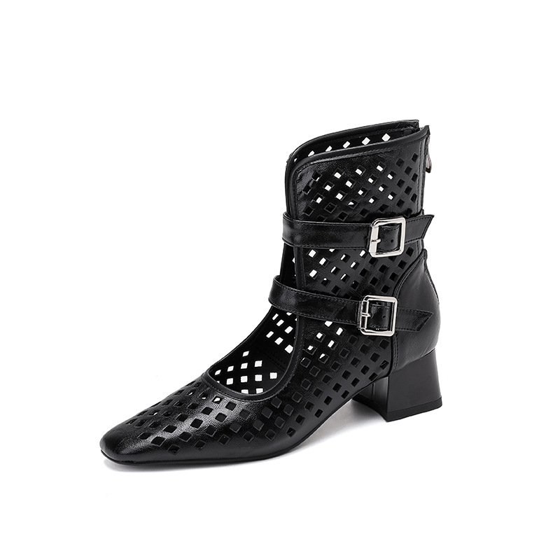 2025 소가죽 스퀘어 토 중공 벨트 버클 샌들 여성 여름 두꺼운 굽 마틴 부츠 짧은 부츠 여름 얇은 부츠스토어 가기
