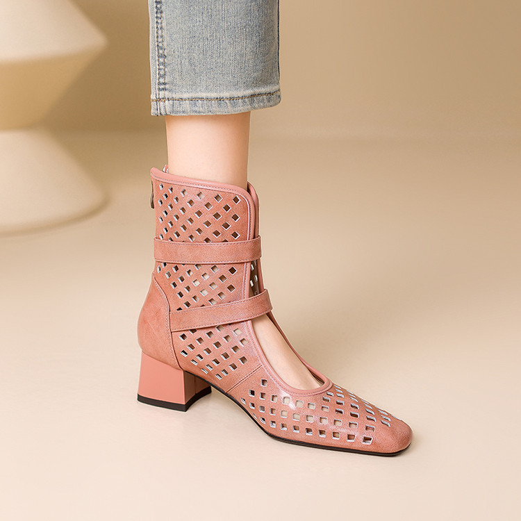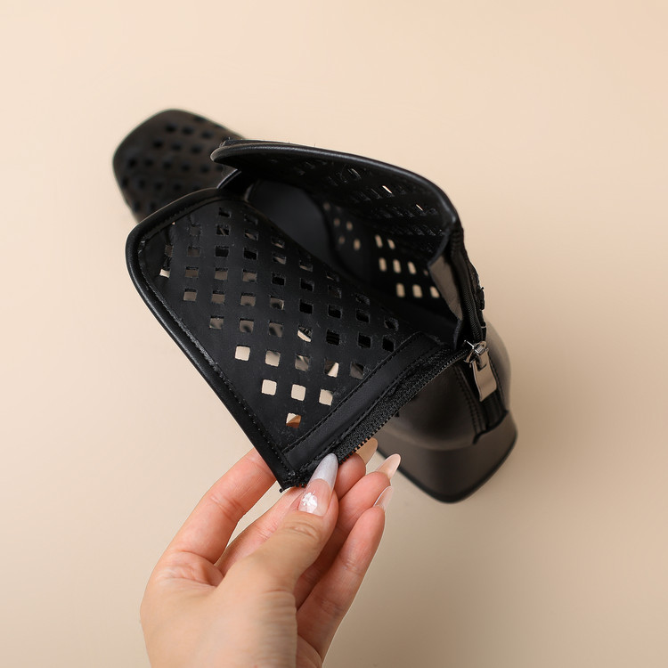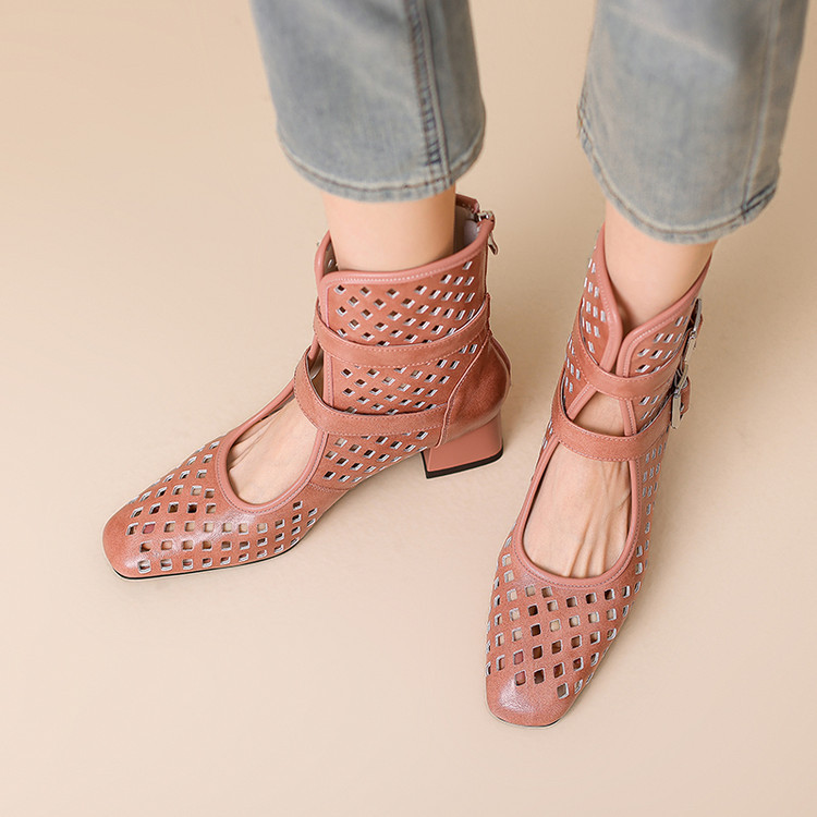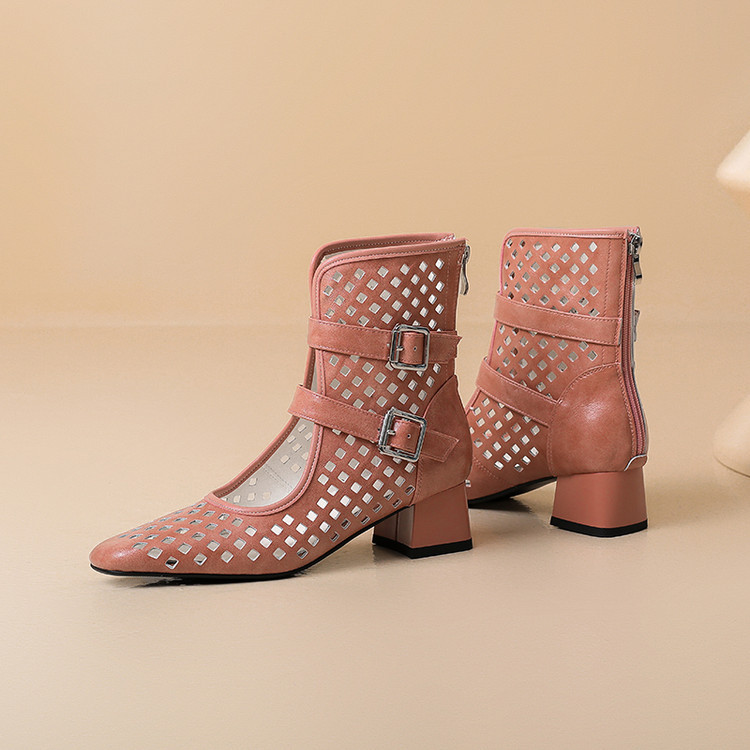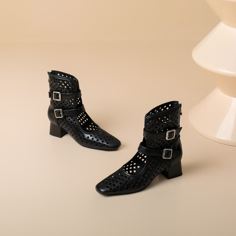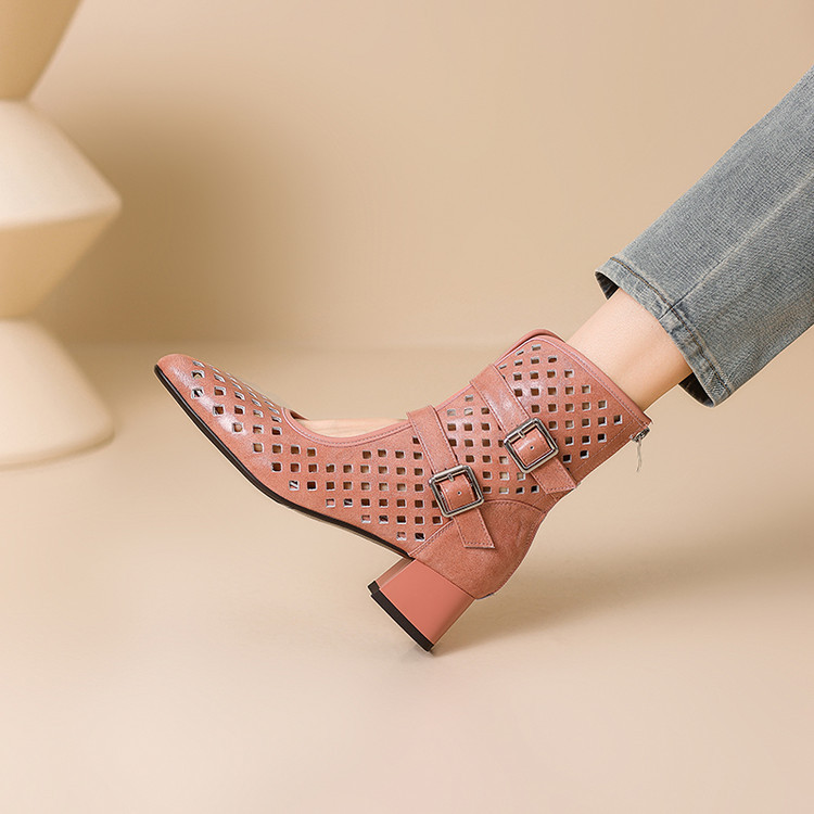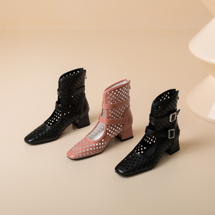 2025 소가죽 스퀘어 토 중공 벨트 버클 샌들 여성 여름 두꺼운 굽 마틴 부츠 짧은 부츠 여름 얇은 부츠스토어 가기