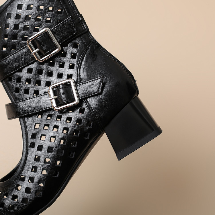 2025 소가죽 스퀘어 토 중공 벨트 버클 샌들 여성 여름 두꺼운 굽 마틴 부츠 짧은 부츠 여름 얇은 부츠