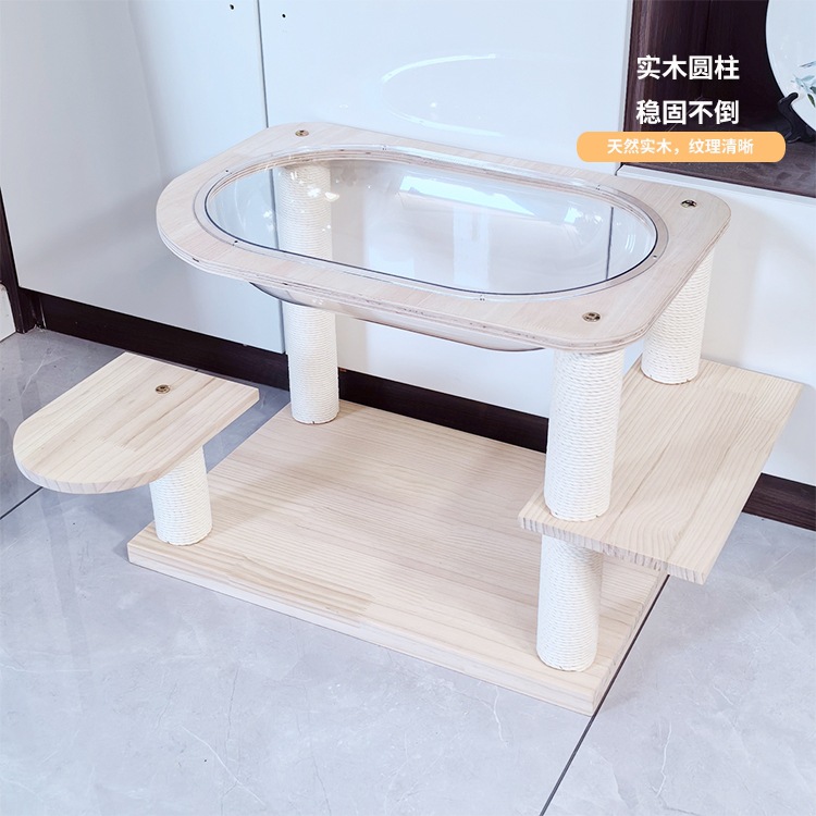 모든 단단한 나무 1.5cm 두꺼운 판재 작은 가정용 바닥에 세워진 나무 기둥 강한 고양이 등반 프레임 낮은 발 새끼 고양이 나무 둥지 통합