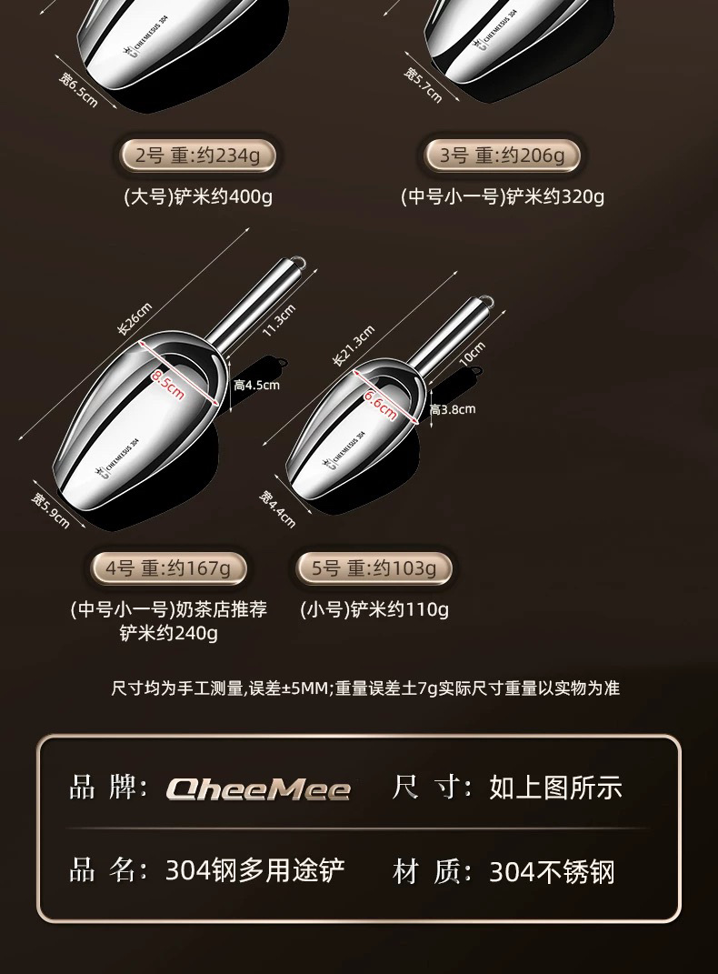 얼음 주걱 304 스테인레스 스틸 주걱 두꺼운 쌀 주걱 밀가루 식품 차 플랫 주걱 말린 과일 밀크 티 샵 아이스 주걱