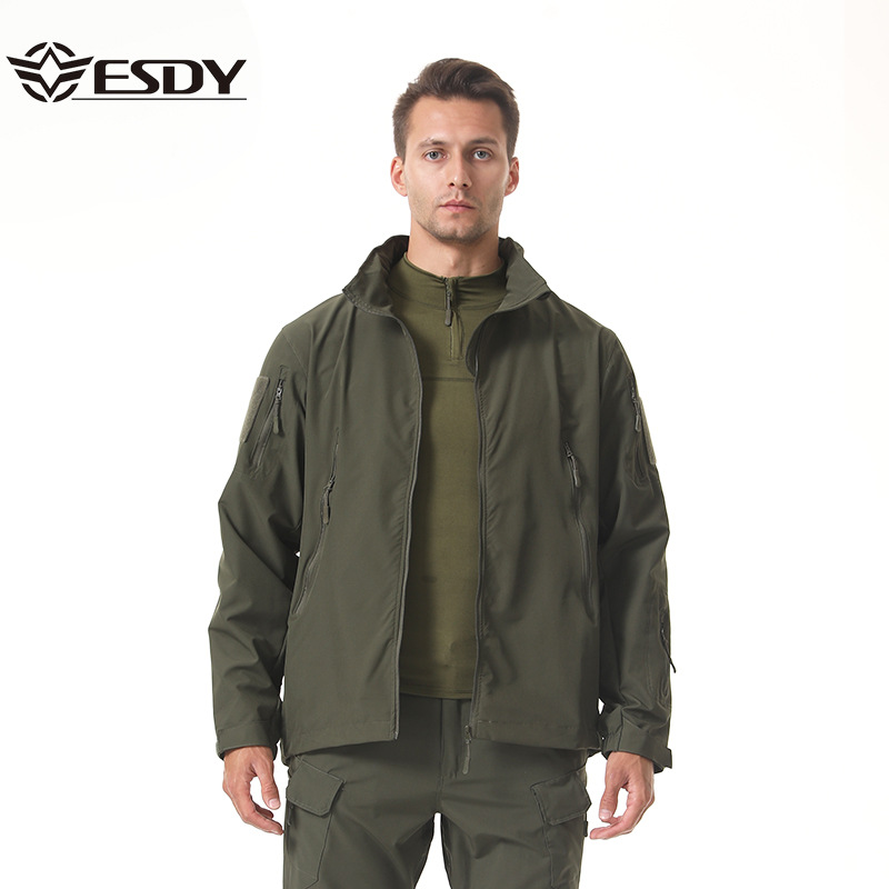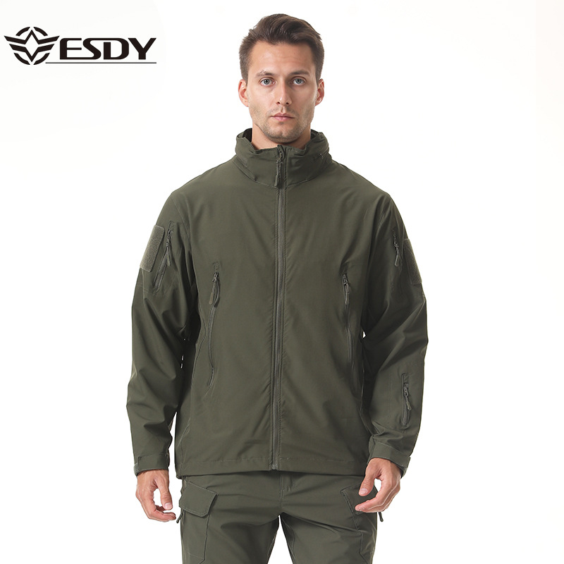 ESDY 녹색 소프트 쉘 얇은 재킷 남자 전술 재킷 재킷 야외 스포츠 방수 및 방풍 등산 재킷