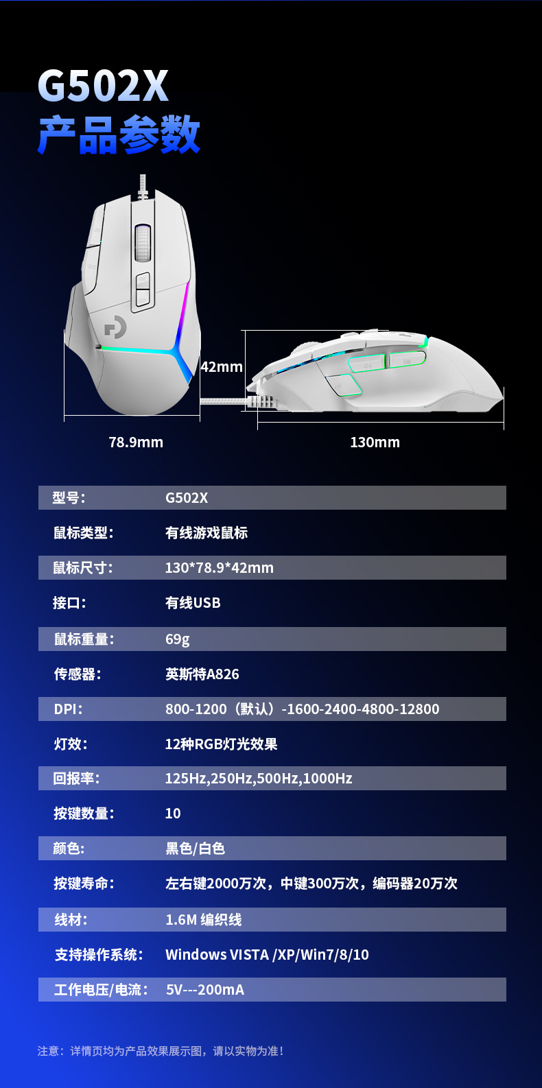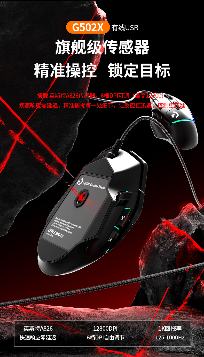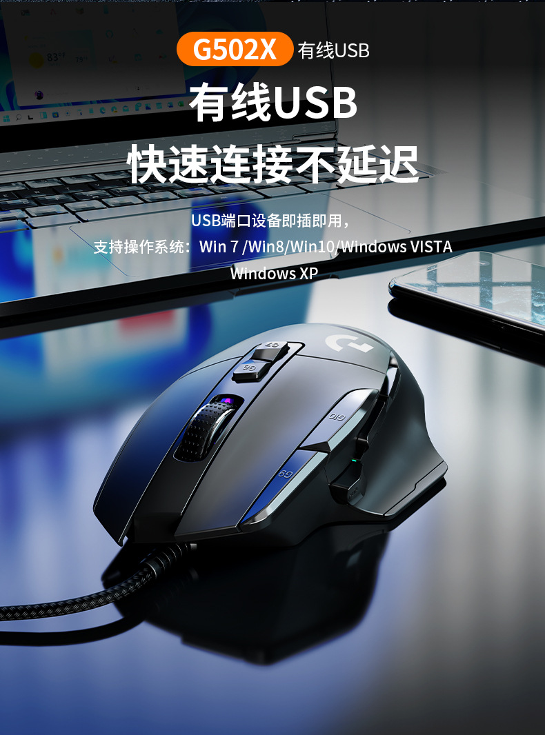 국경 간 G502X e-스포츠 게임용 마우스 유선 RGB 치킨 매크로 프로그래밍 게임 오피스 노트북 마우스