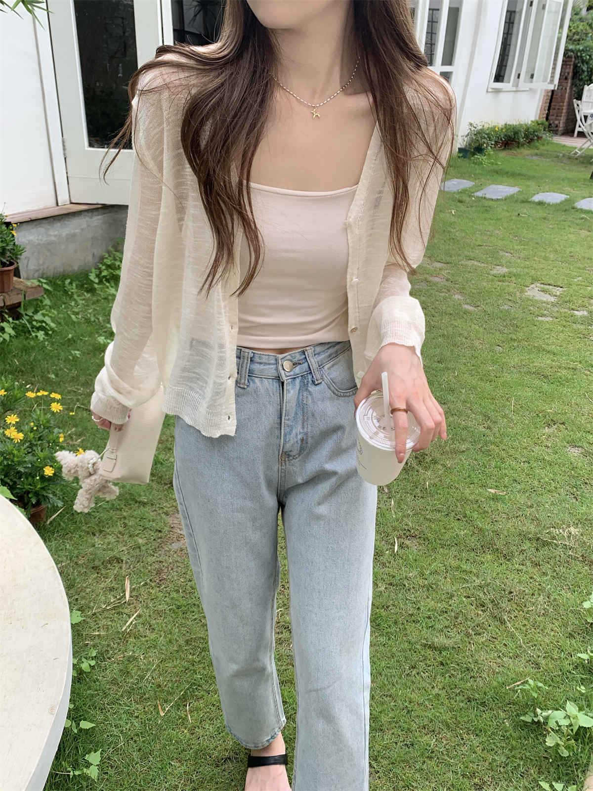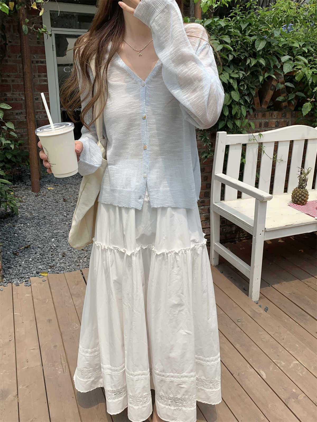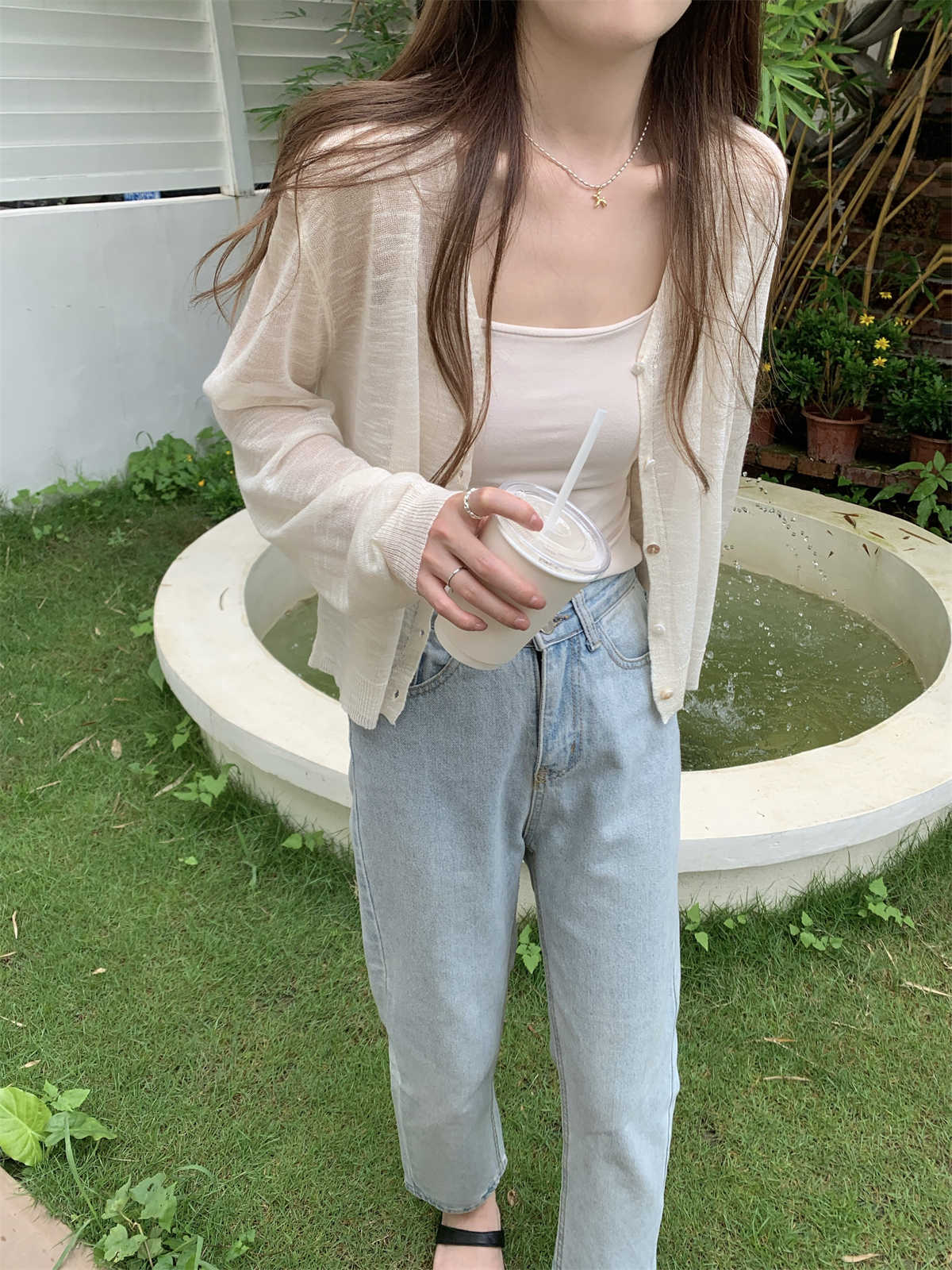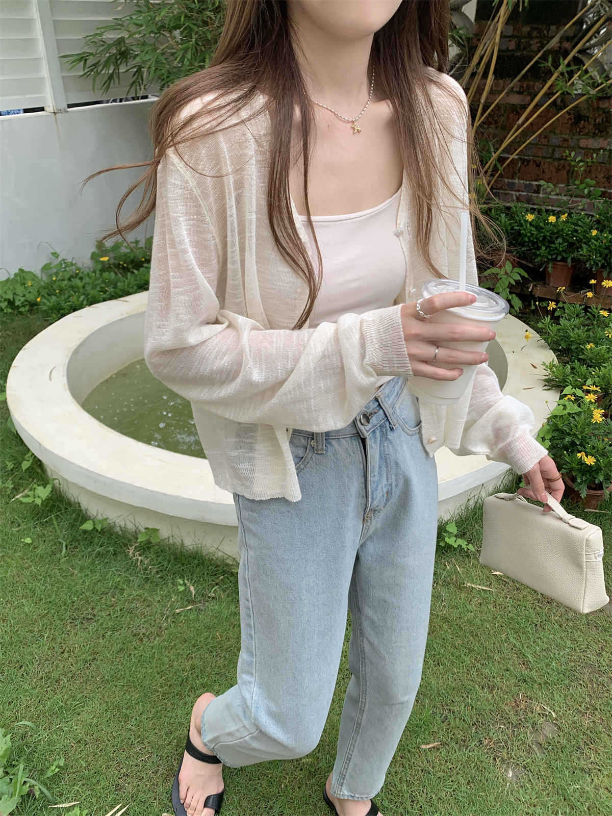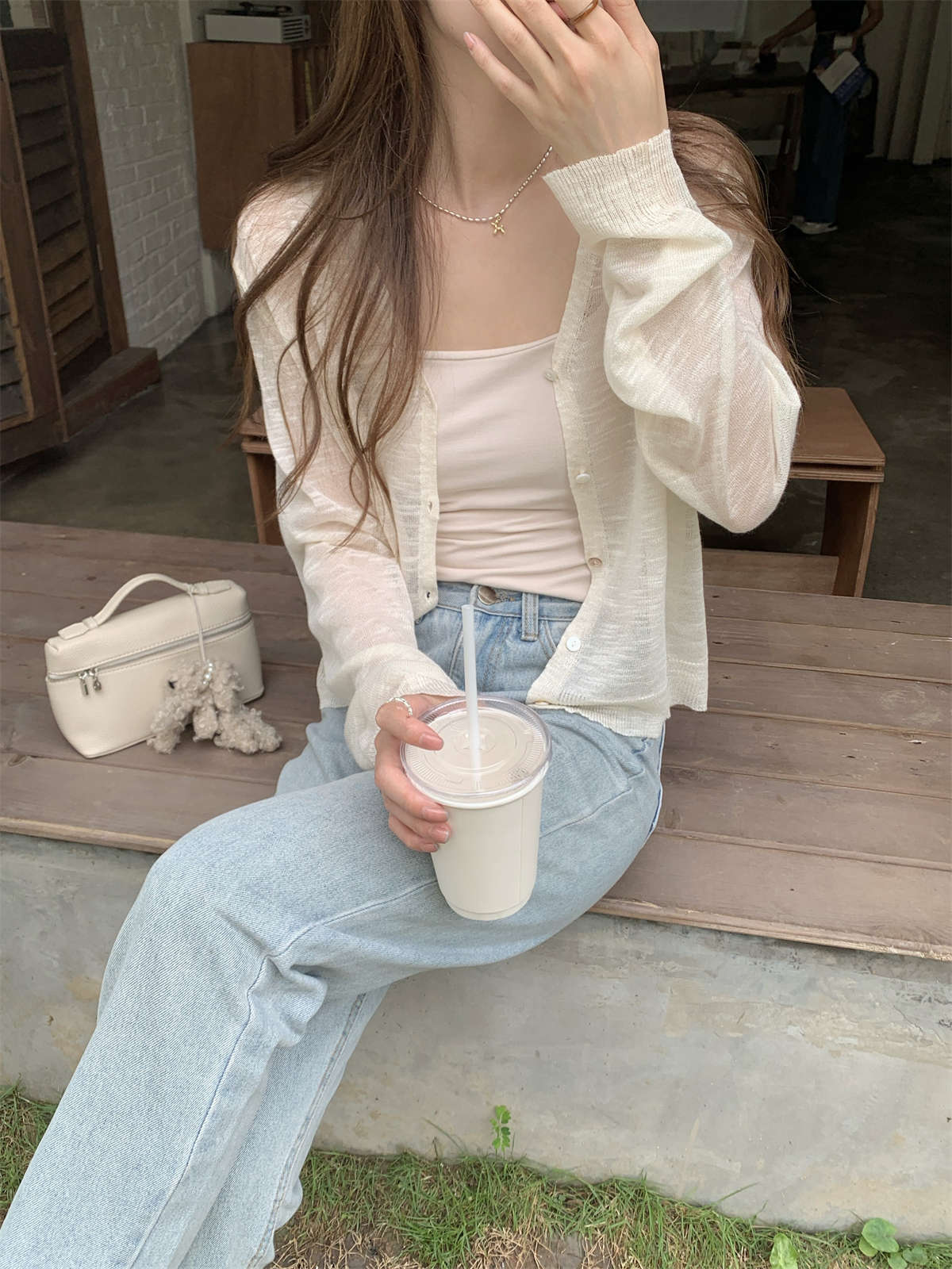 우아한 V 넥 분위기 여름 얇은 Ins 슬럽 선 스크린 코트 긴팔 니트 탑 여성용 외부 카디건스토어 가기