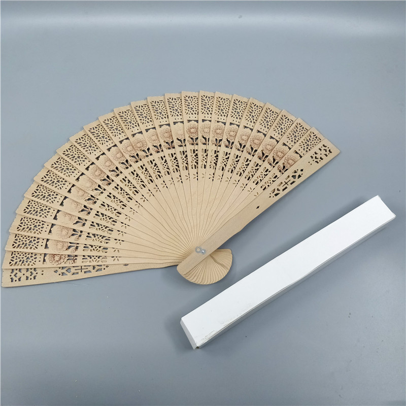 얼굴을 가리기 위한 접이식 부채, 여성용 사진 공예 선물용 백단향 부채, 고대 스타일 중공 전체 나무 부채