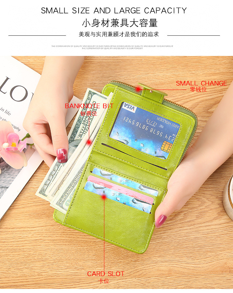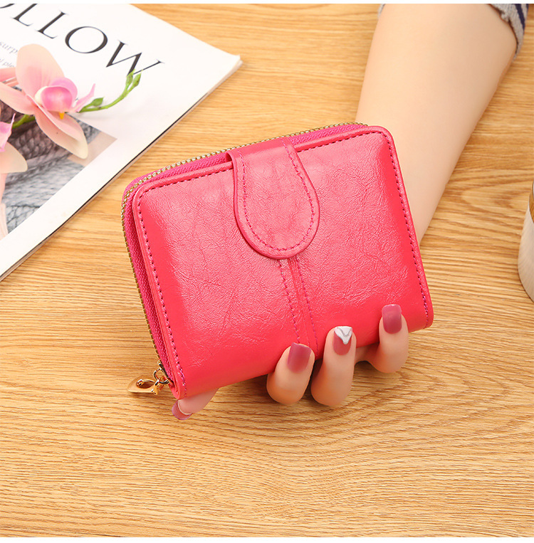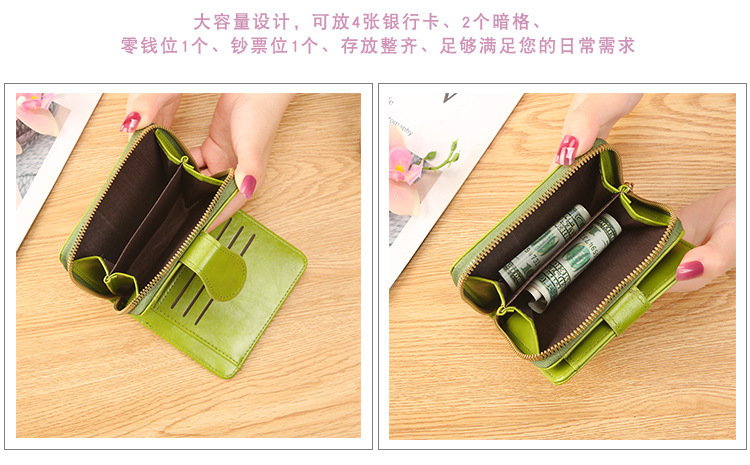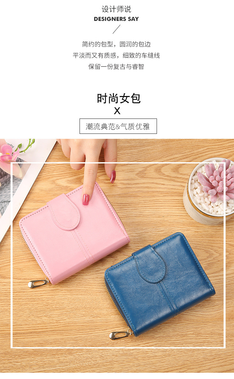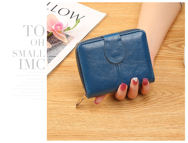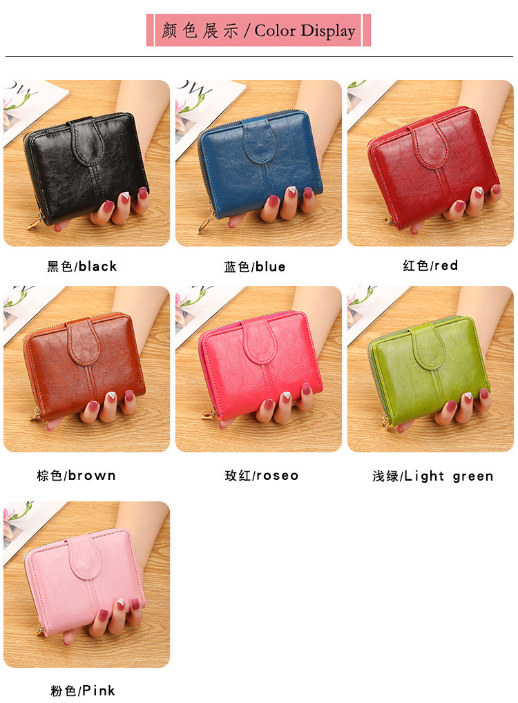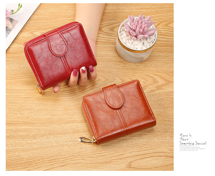 짧은 여성 지갑 새로운 국경 여성 기름 왁스 가죽 빈티지 동전 지갑 간단한 버클 동전 가방 소녀의 작은 지갑스토어 가기