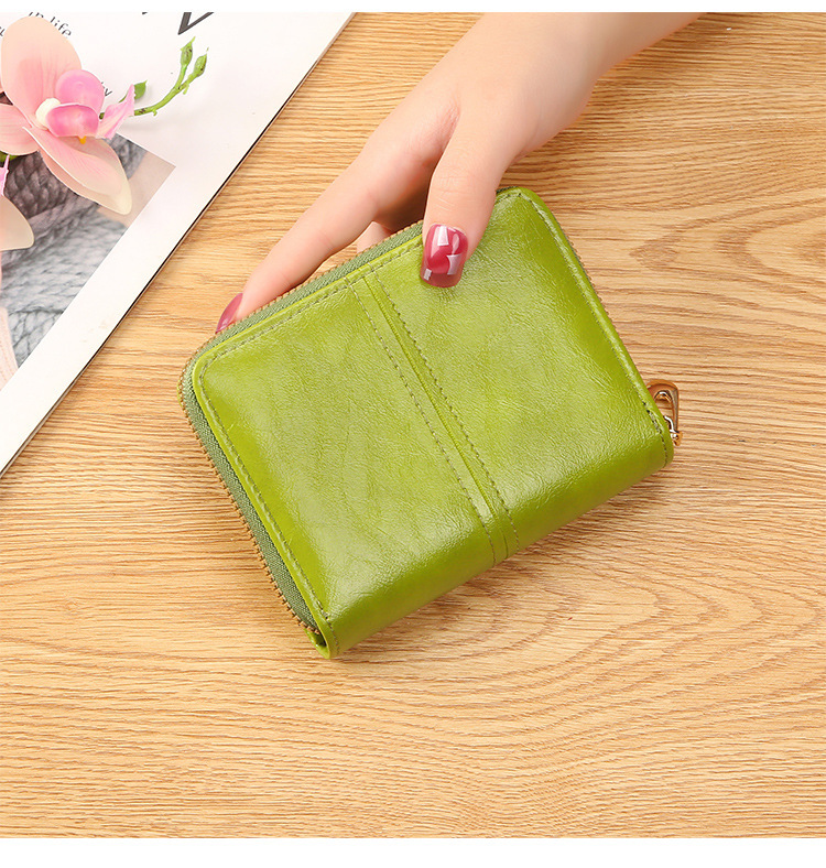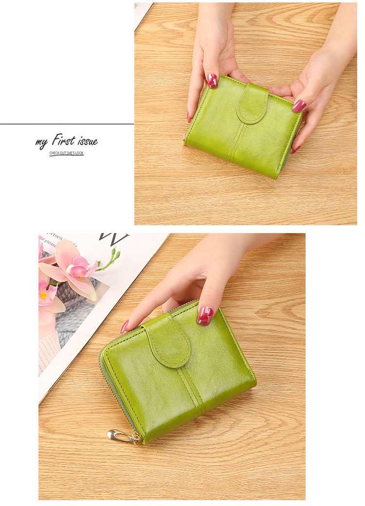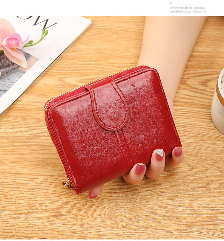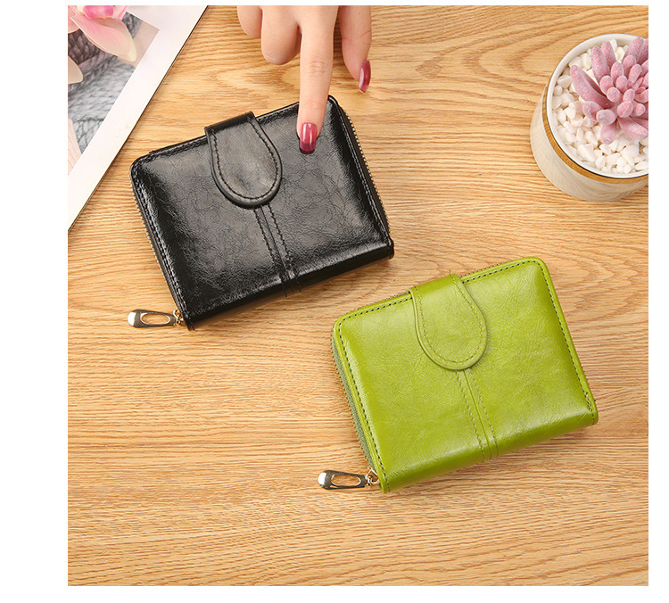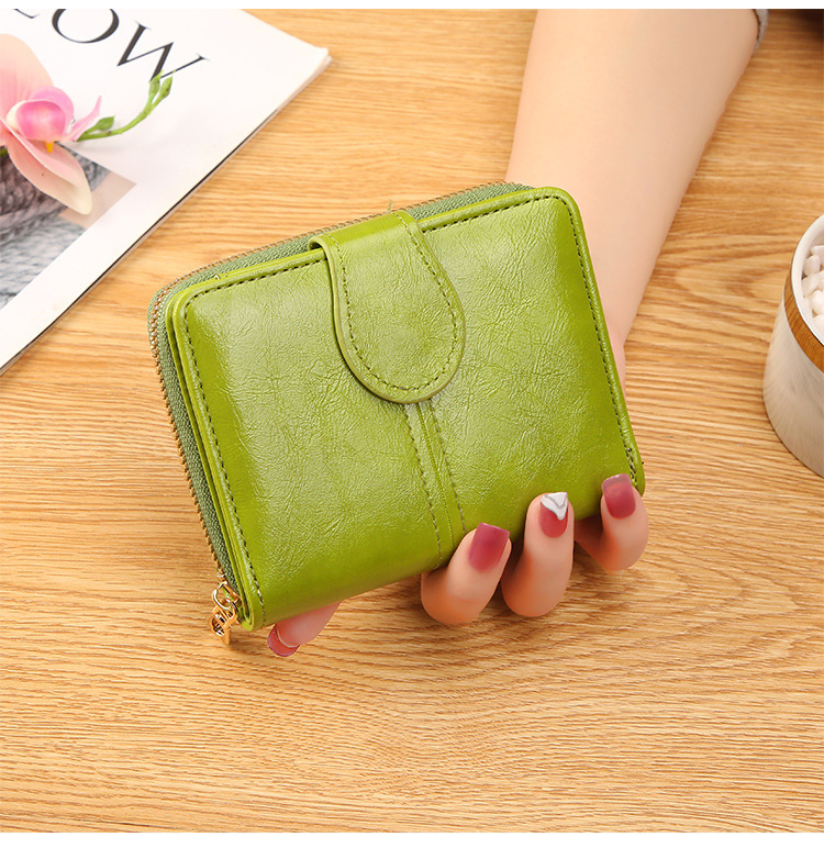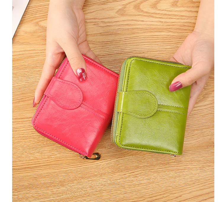 짧은 여성 지갑 새로운 국경 여성 기름 왁스 가죽 빈티지 동전 지갑 간단한 버클 동전 가방 소녀의 작은 지갑