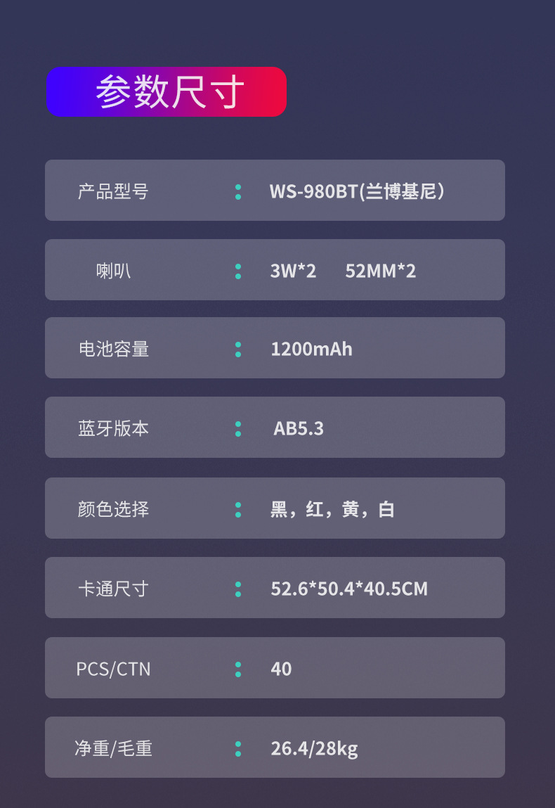 WS980 람보르기니 자동차 모델 블루투스 스피커 슈퍼 베이스 사운드 기프트 TWS 스피커 해외 무역스토어 가기
