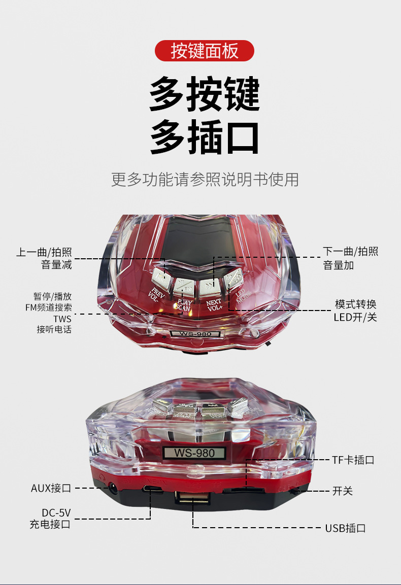 WS980 람보르기니 자동차 모델 블루투스 스피커 슈퍼 베이스 사운드 기프트 TWS 스피커 해외 무역