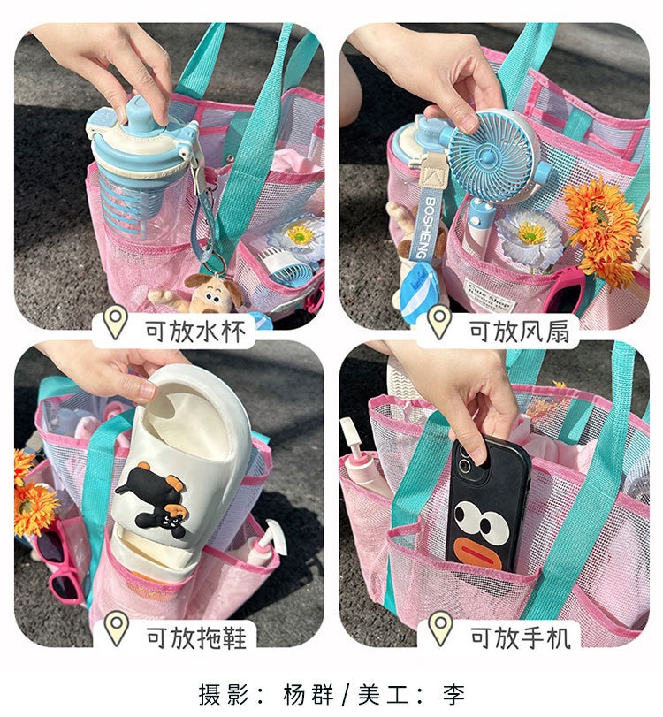 여행 필수 메쉬 수영 가방 휴대용 대용량 비치 가방 야외 접이식 수영복 보관 메쉬 가방 배수 가방스토어 가기