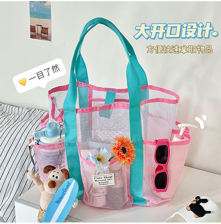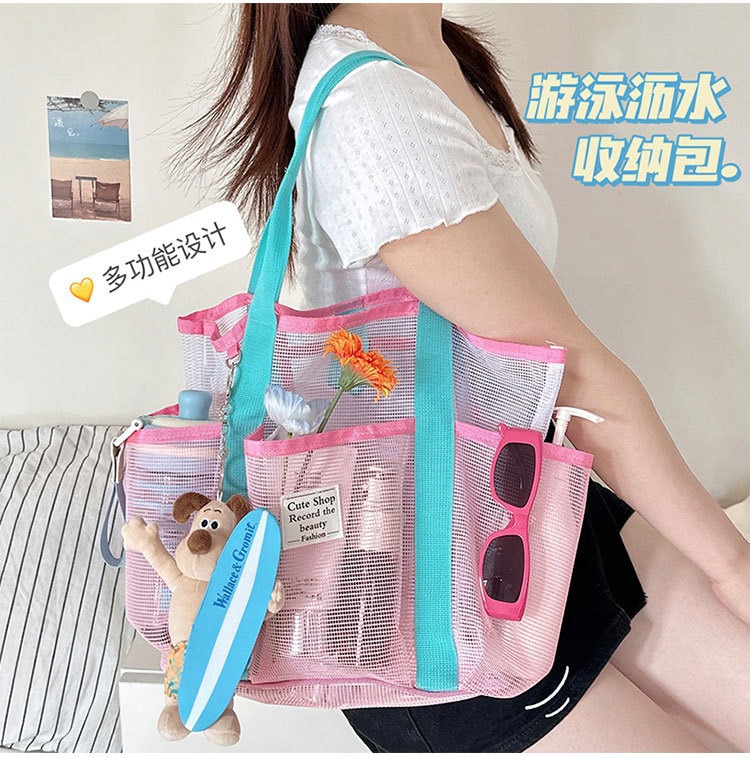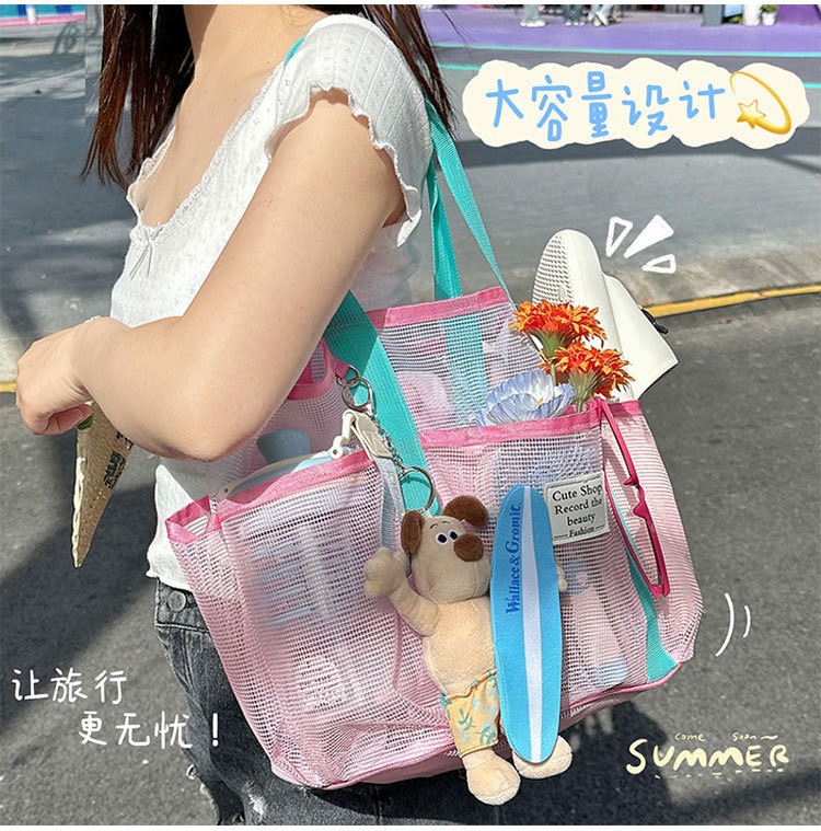 여행 필수 메쉬 수영 가방 휴대용 대용량 비치 가방 야외 접이식 수영복 보관 메쉬 가방 배수 가방