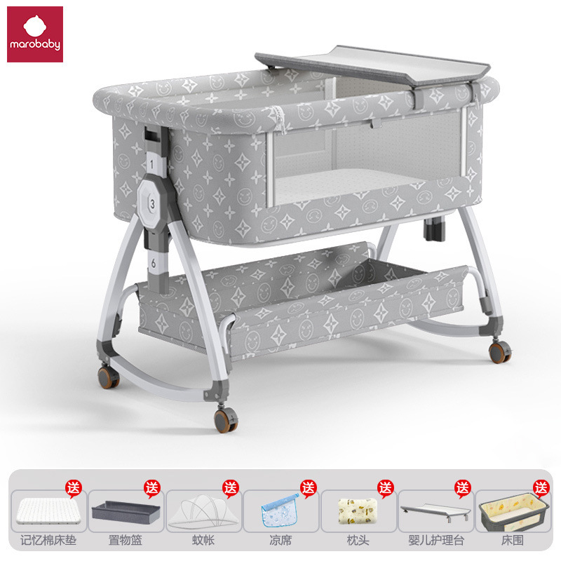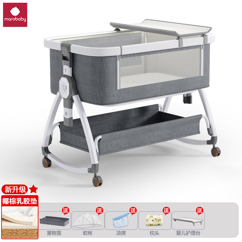 아기 침대 접합 대형 침대 신생아 bb 침대 어린이 침대 이동식 접이식 이동식 리프팅 요람 침대스토어 가기