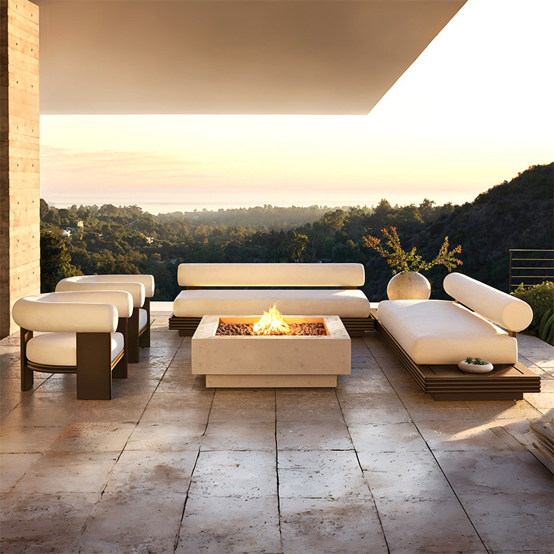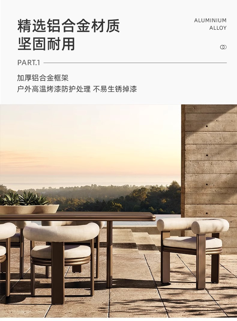 북유럽 티크 식탁과 의자 빌라 안뜰 단단한 나무 테이블과 의자 정원 야외 알루미늄 합금 식탁과 의자 조합스토어 가기