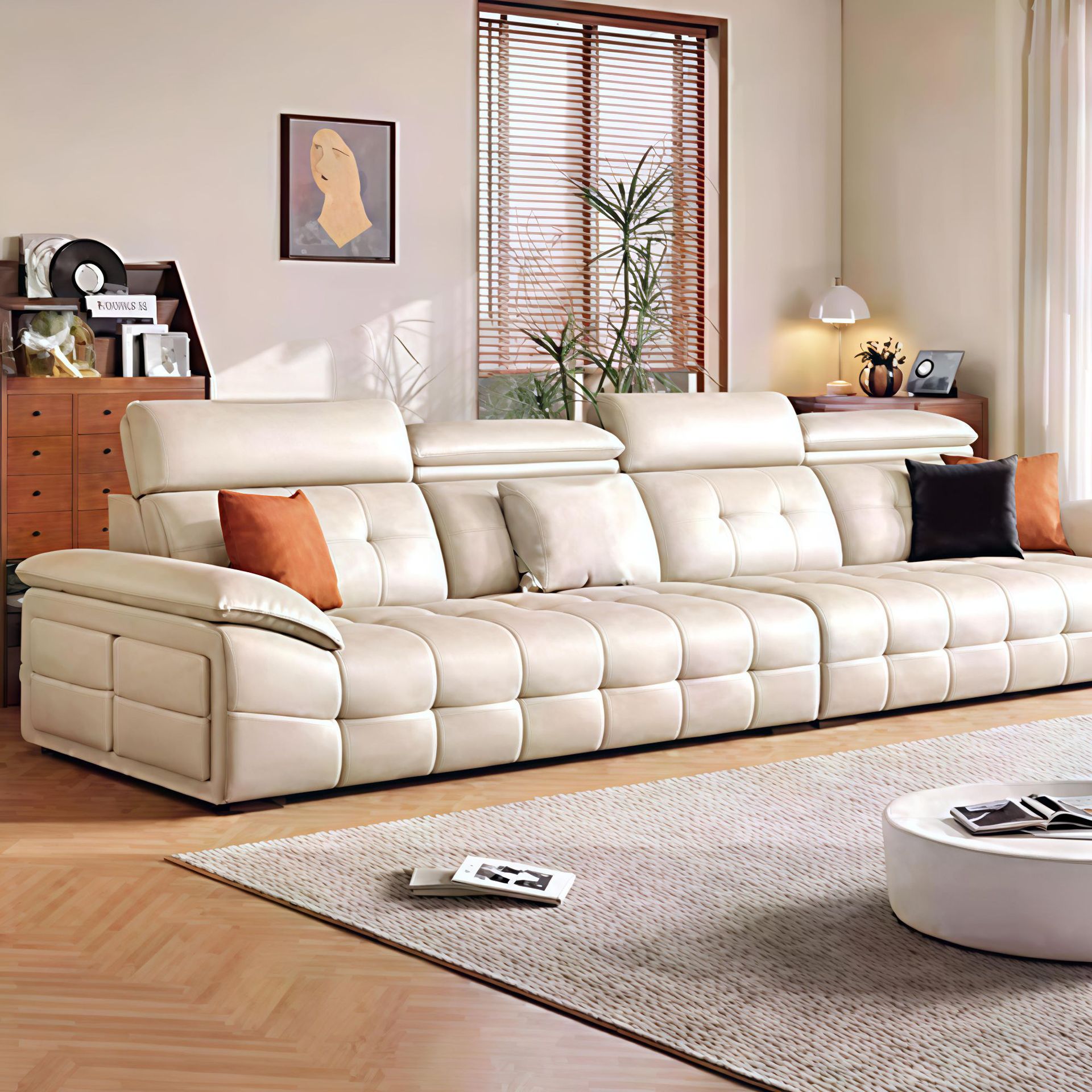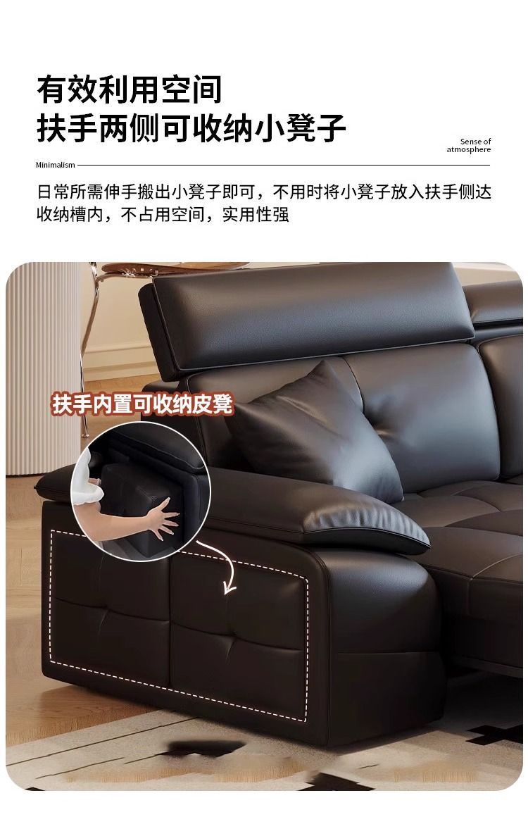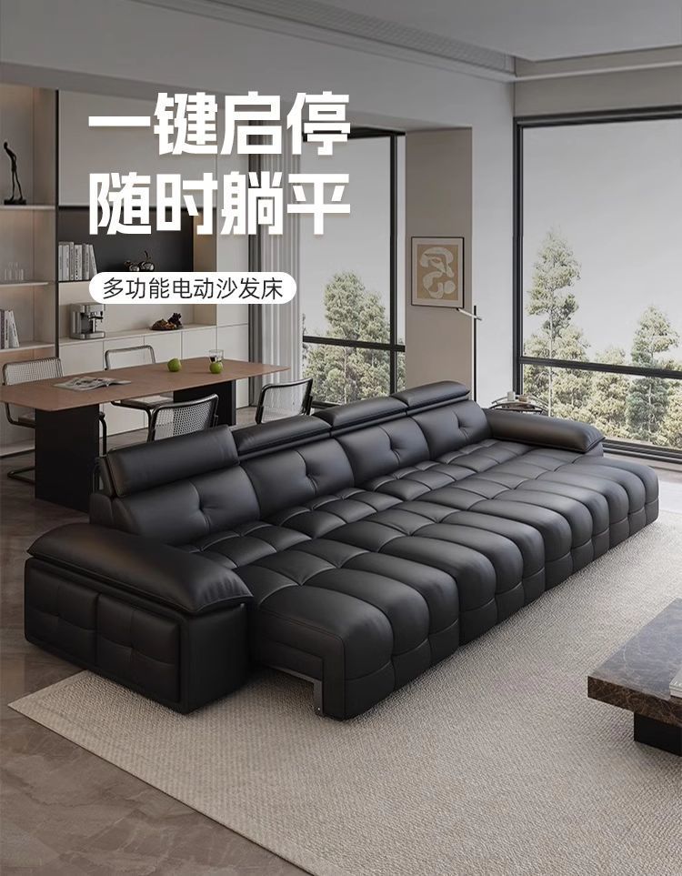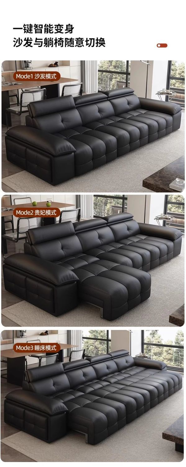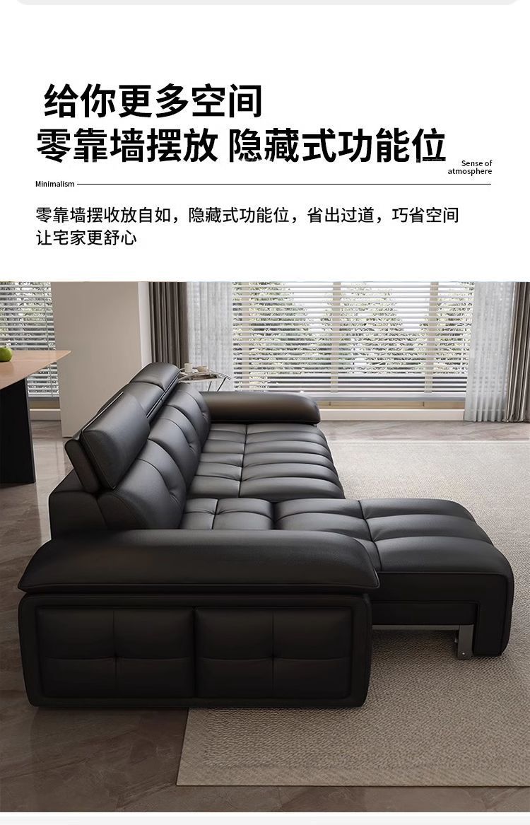 미니멀리스트 로렌스 가죽 전기 기능성 소파 이탈리아 스타일 스트레이트 로우 거실 간단한 벽 망원경 이중 목적 소파 침대스토어 가기