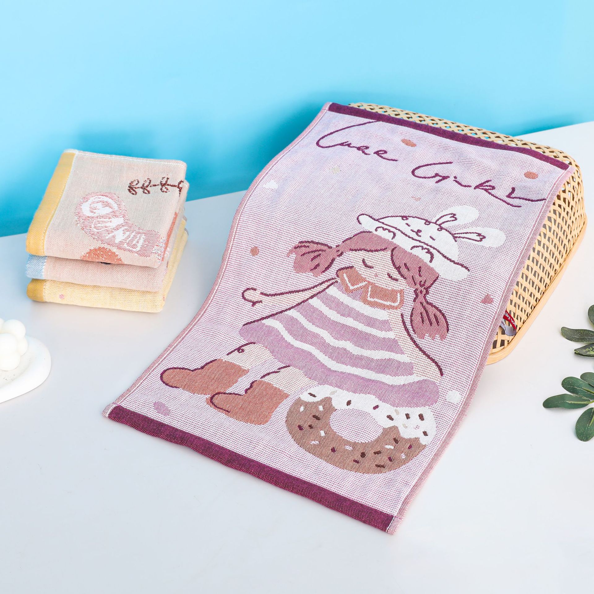 거즈면 어린이 수건 소년과 소녀 만화 작은 수건 부드러운 흡수성 얼굴 수건 매달려 수건 공장 도매스토어 가기