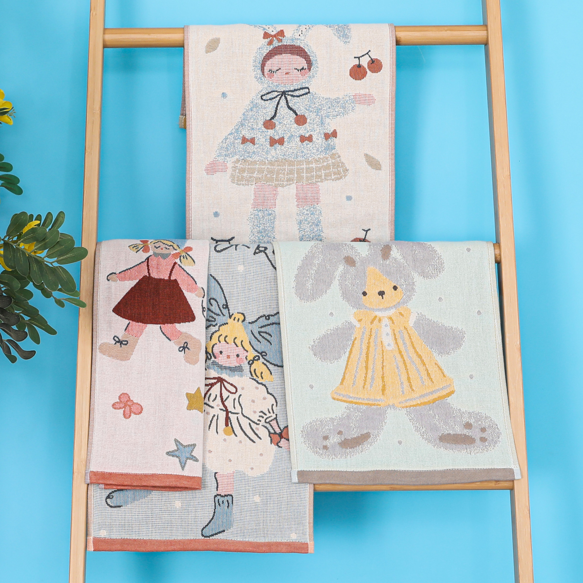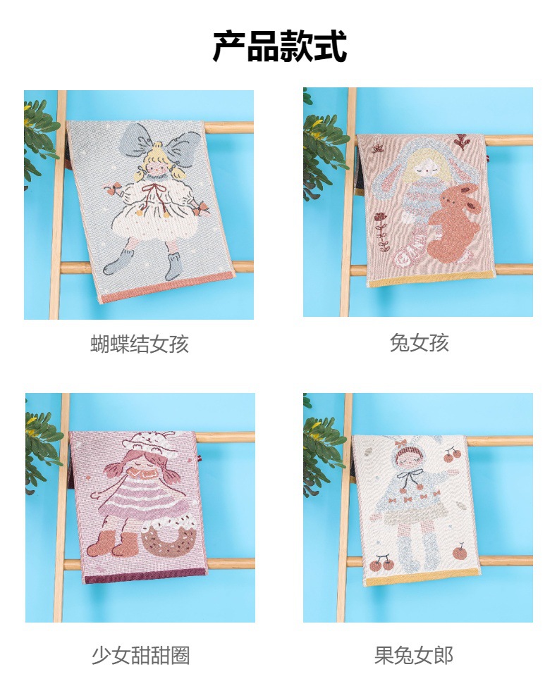 거즈면 어린이 수건 소년과 소녀 만화 작은 수건 부드러운 흡수성 얼굴 수건 매달려 수건 공장 도매