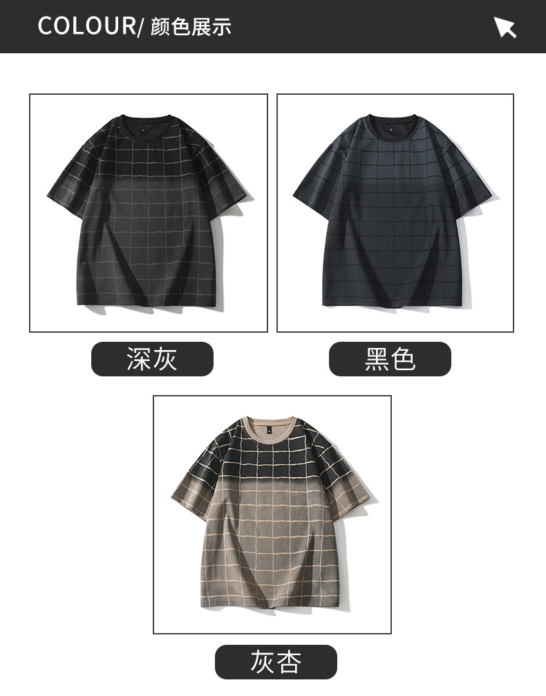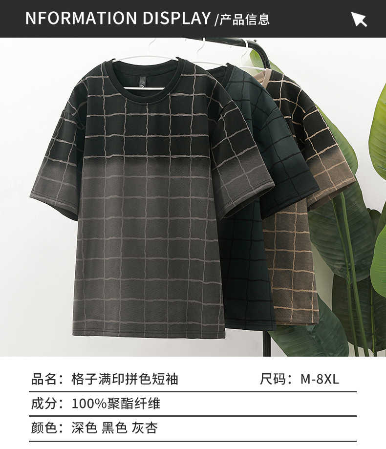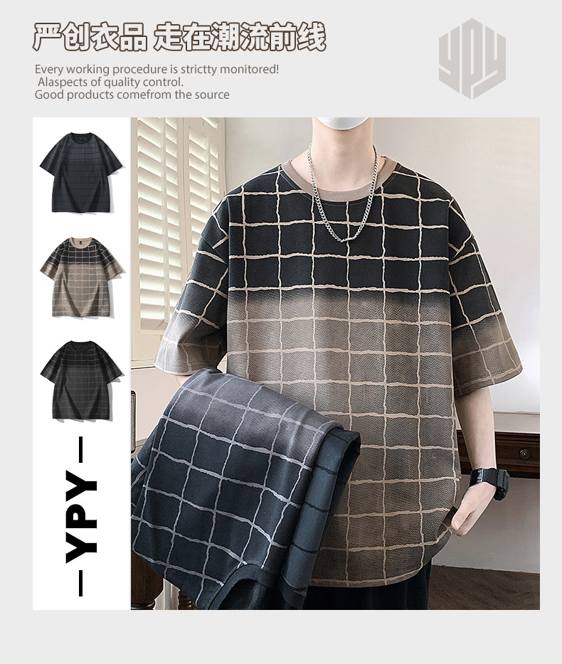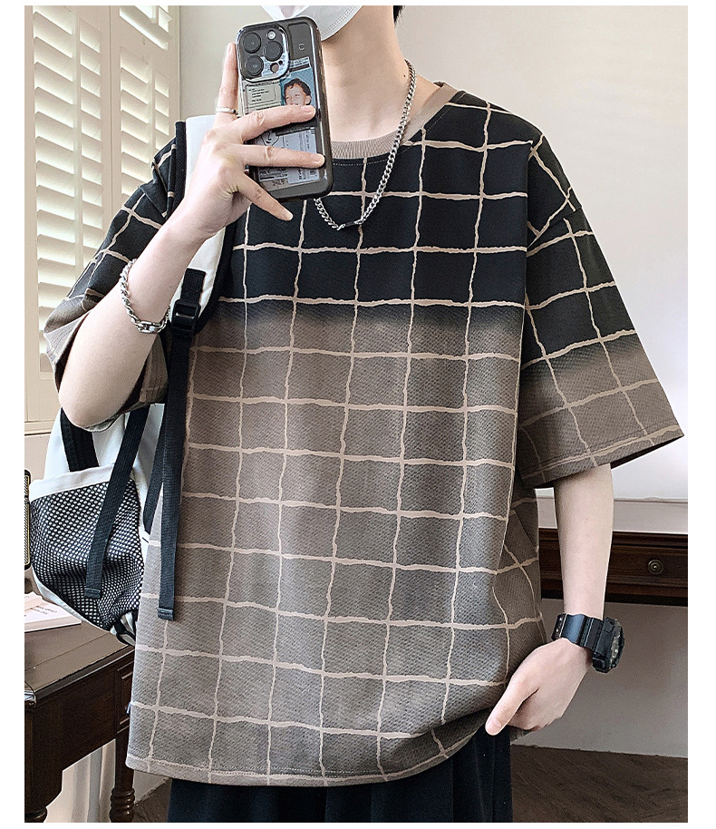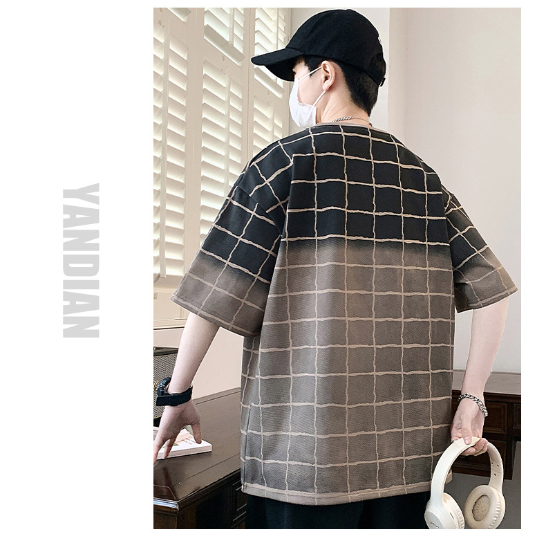 여름 새로운 점진적 색상 반팔 남성 격자 무늬 십대 패션 브랜드 캐주얼 느슨한 반소매 티셔츠 홍콩 스타일 남성복스토어 가기