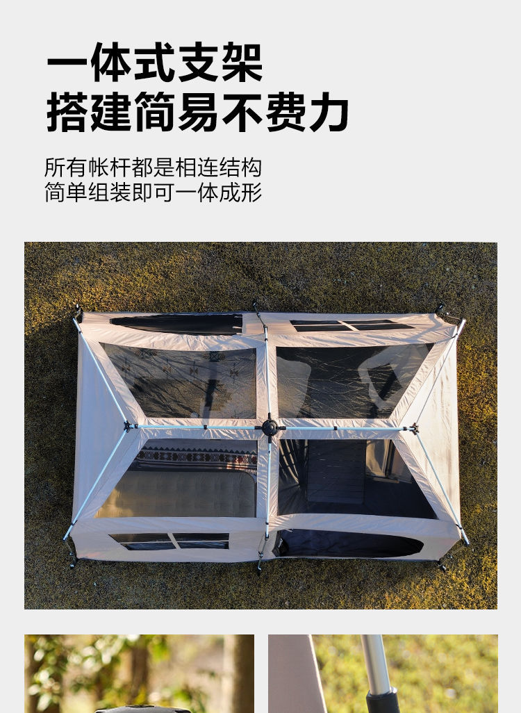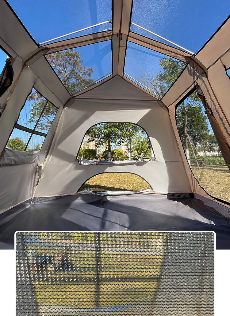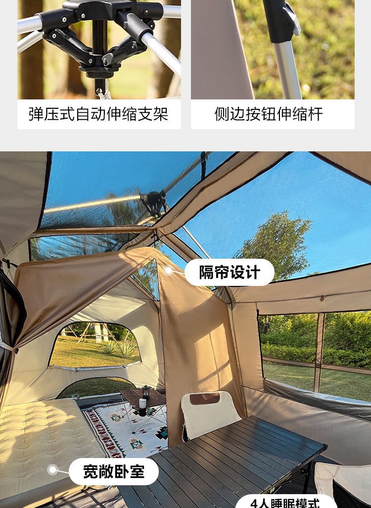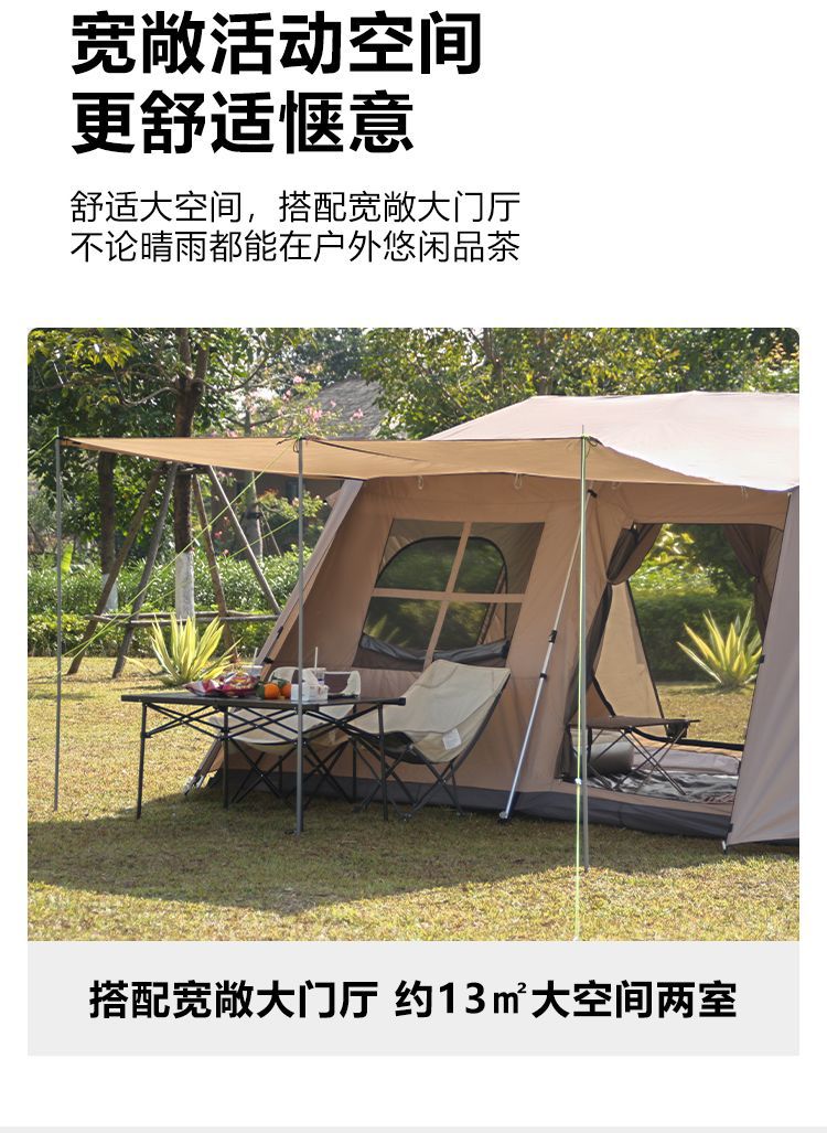 비바람 방지를위한 2 개의 방과 1 개의 홀이있는 설치 무료 비닐 야외 선 스크린 캠핑 텐트 야간 지붕 캐노피 필드스토어 가기
