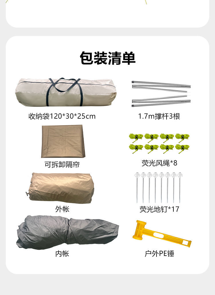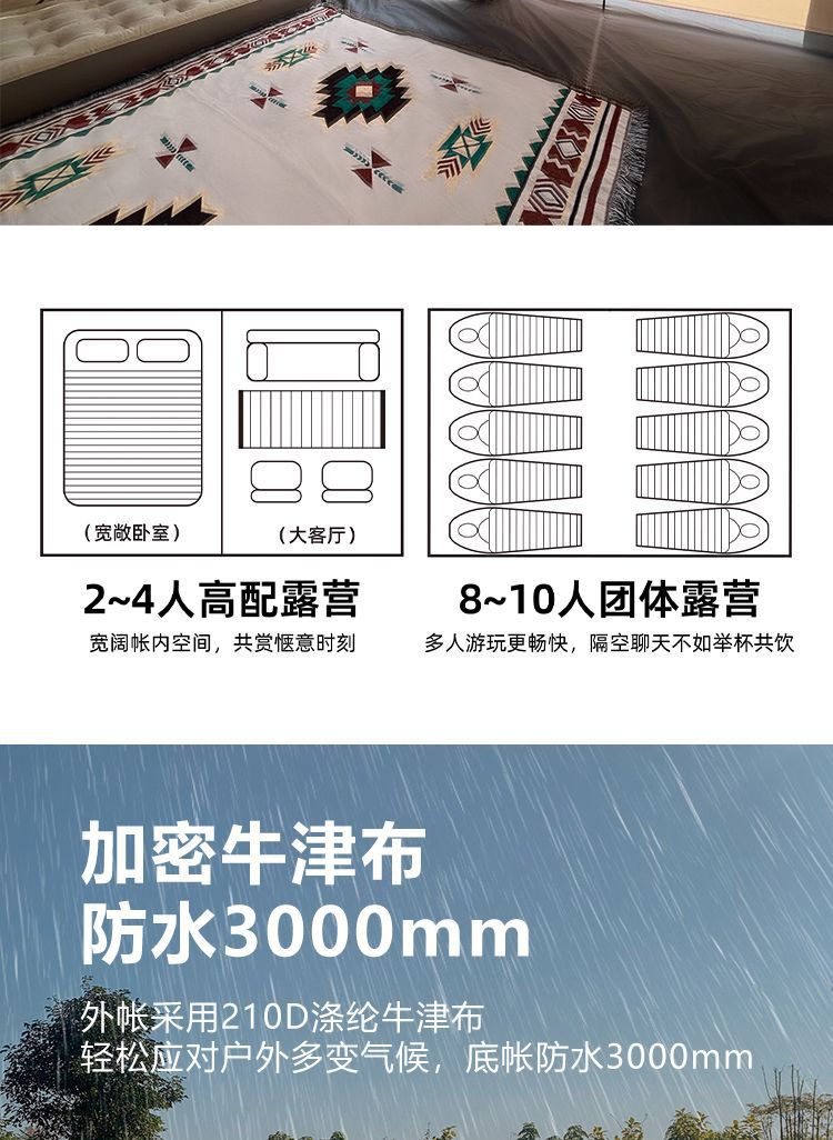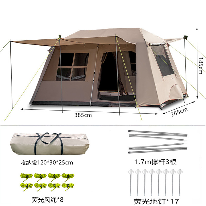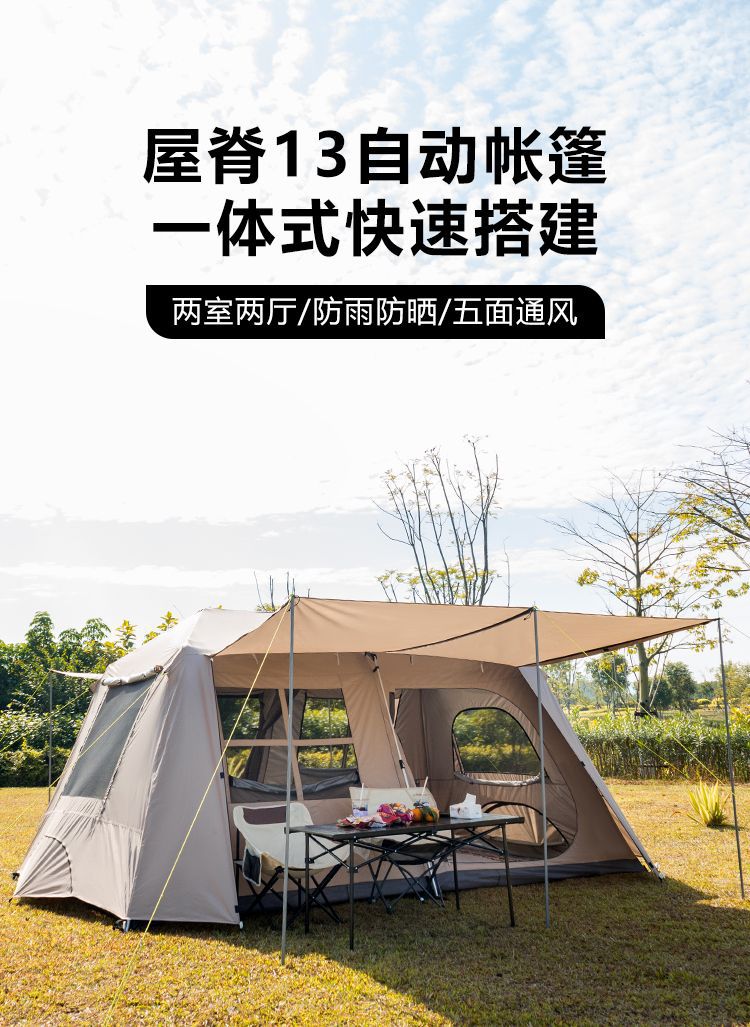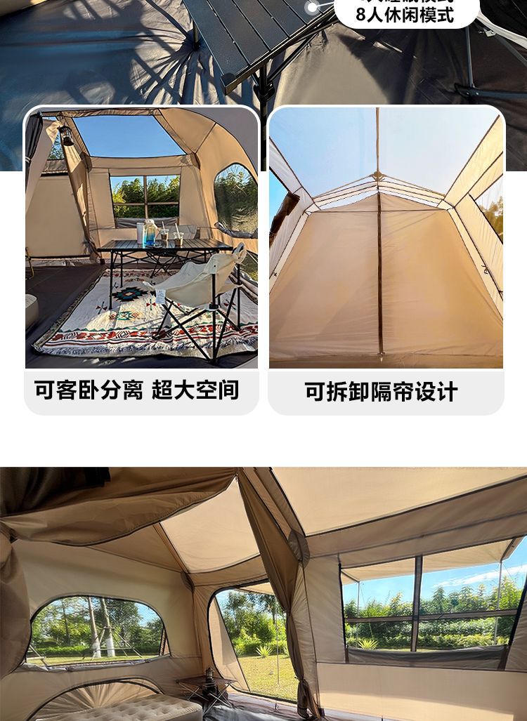 비바람 방지를위한 2 개의 방과 1 개의 홀이있는 설치 무료 비닐 야외 선 스크린 캠핑 텐트 야간 지붕 캐노피 필드스토어 가기