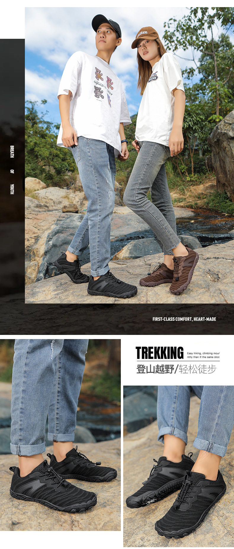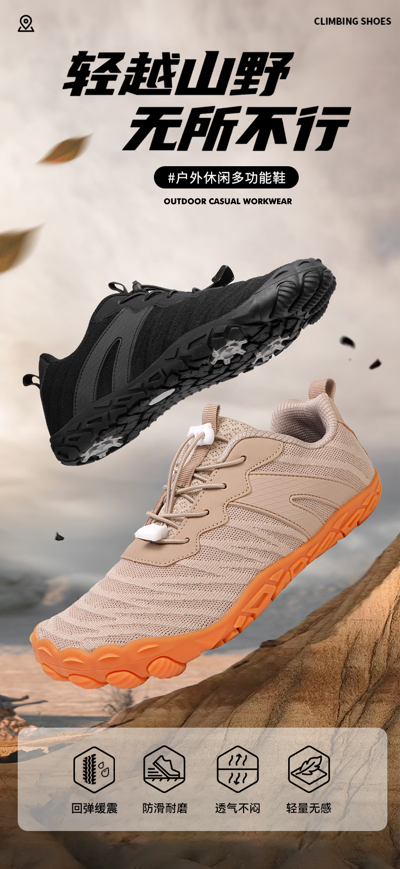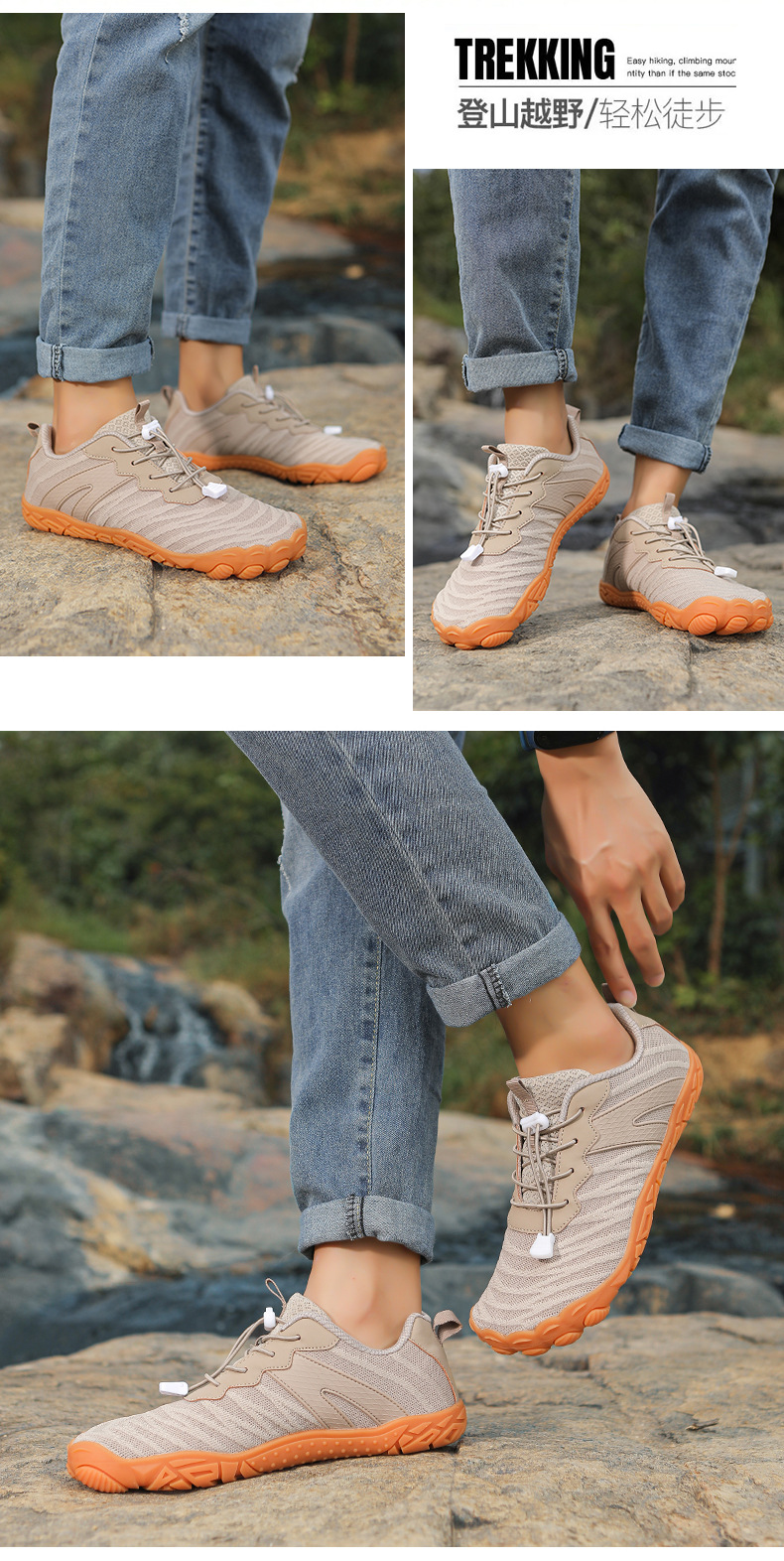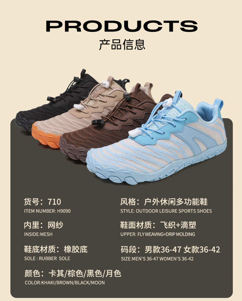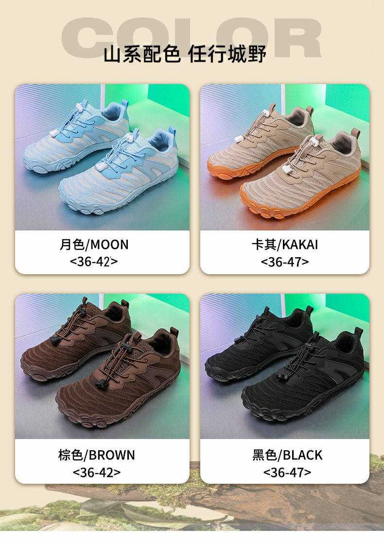 남성과 여성을 위한 야외 하이킹 신발, 새로운 사계절 다섯 손가락 신발, 커플 캐주얼 운동화, 통기성이 뛰어나고 가볍고 미끄럼 방지 등산 신발