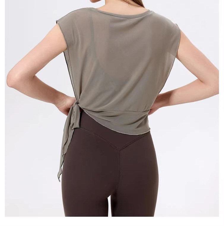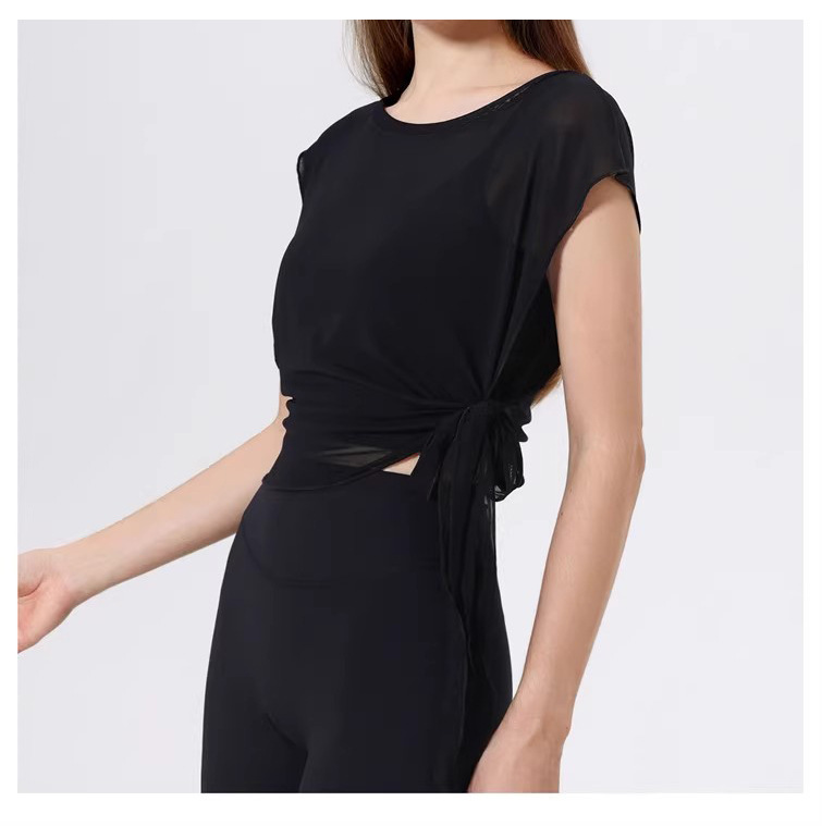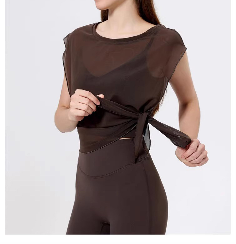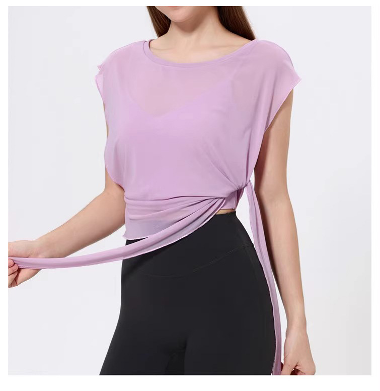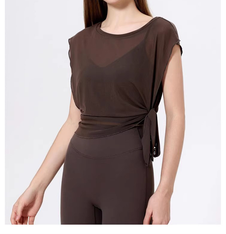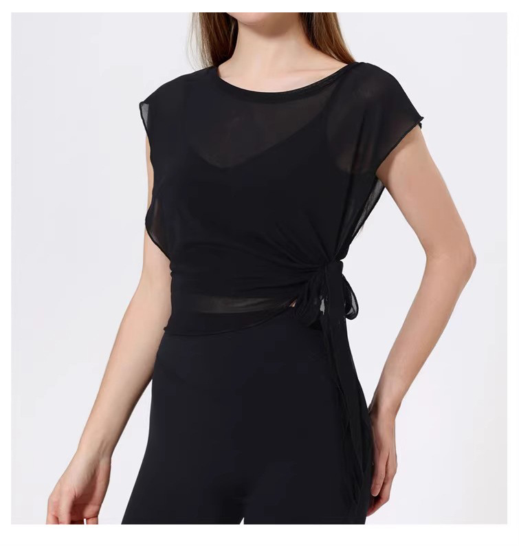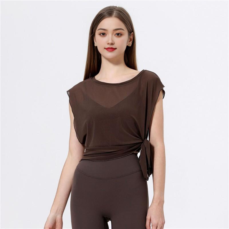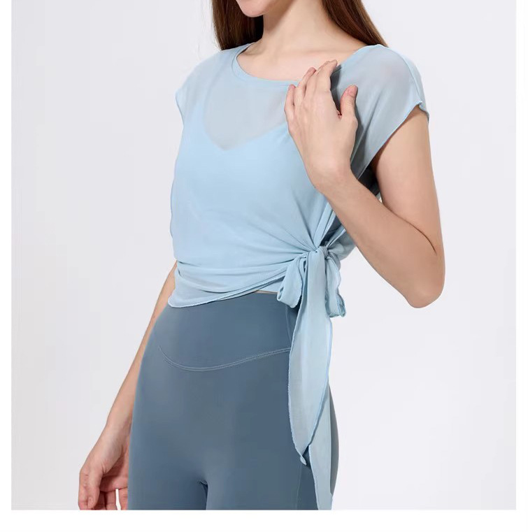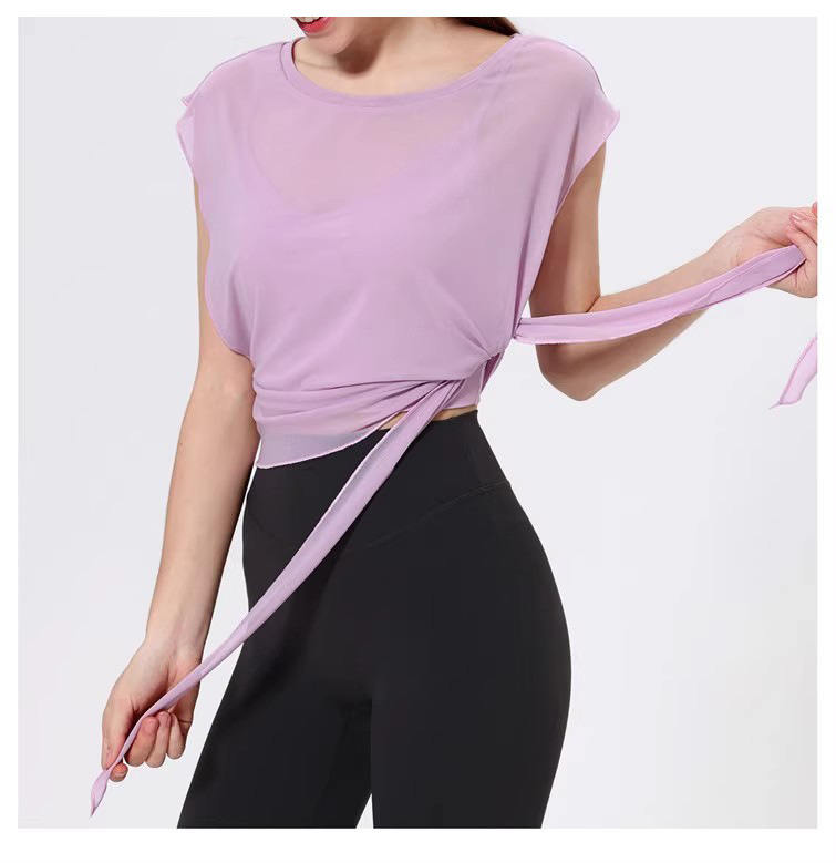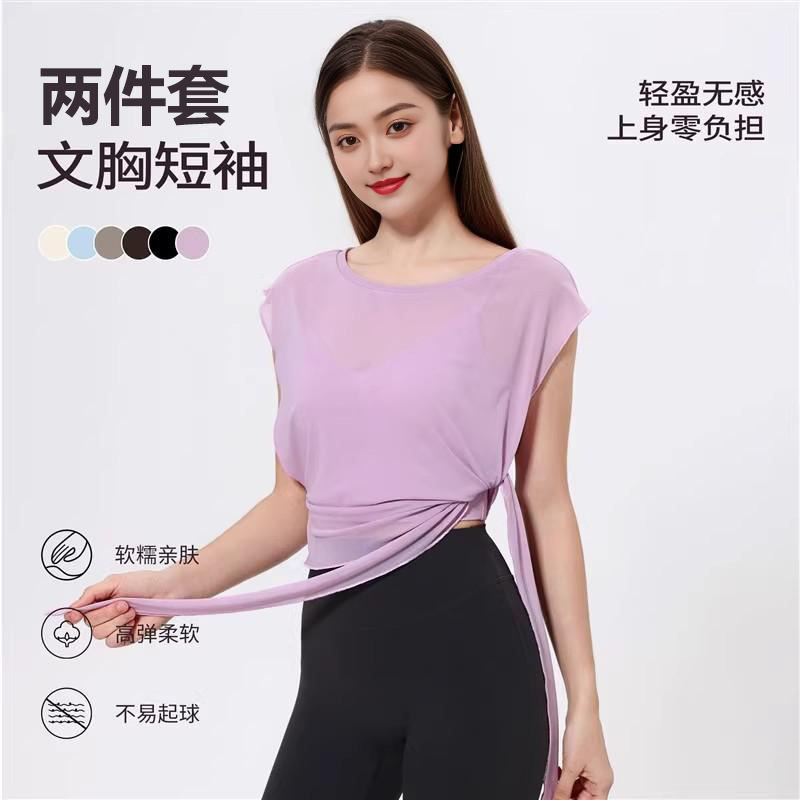 스포츠 브라 투피스 세트 메쉬 요가 반팔 러닝 속건성 고정 가슴 패드 피트니스 댄스 탑 블라우스스토어 가기