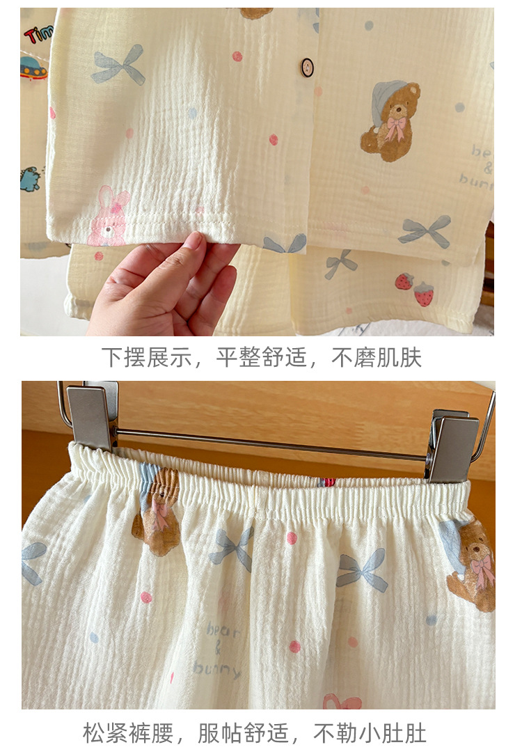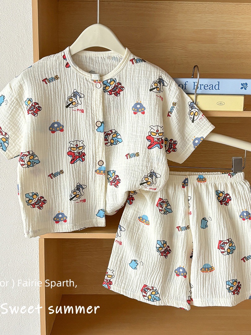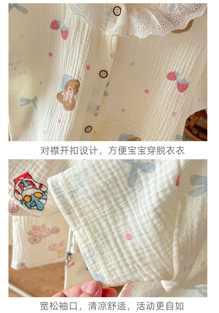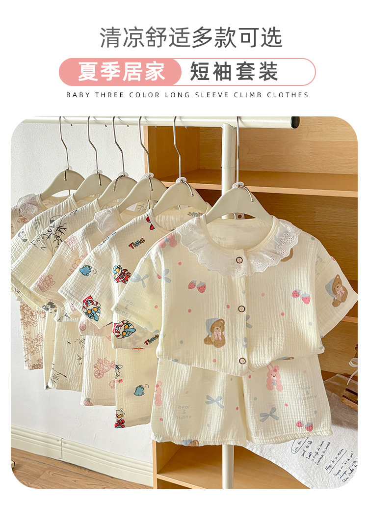 남아 및 여아용 아동복, 면 거즈 A형 반팔 양복, 유아용 얇은 반팔 잠옷, 여름 반팔 양복