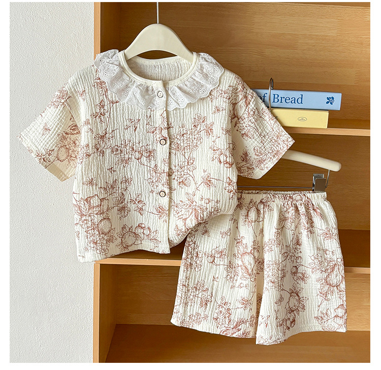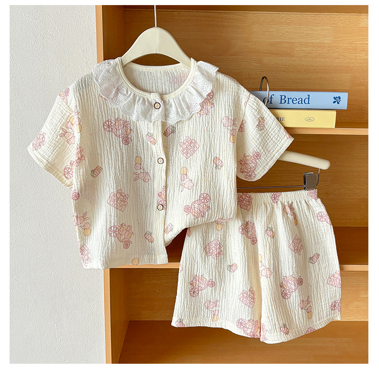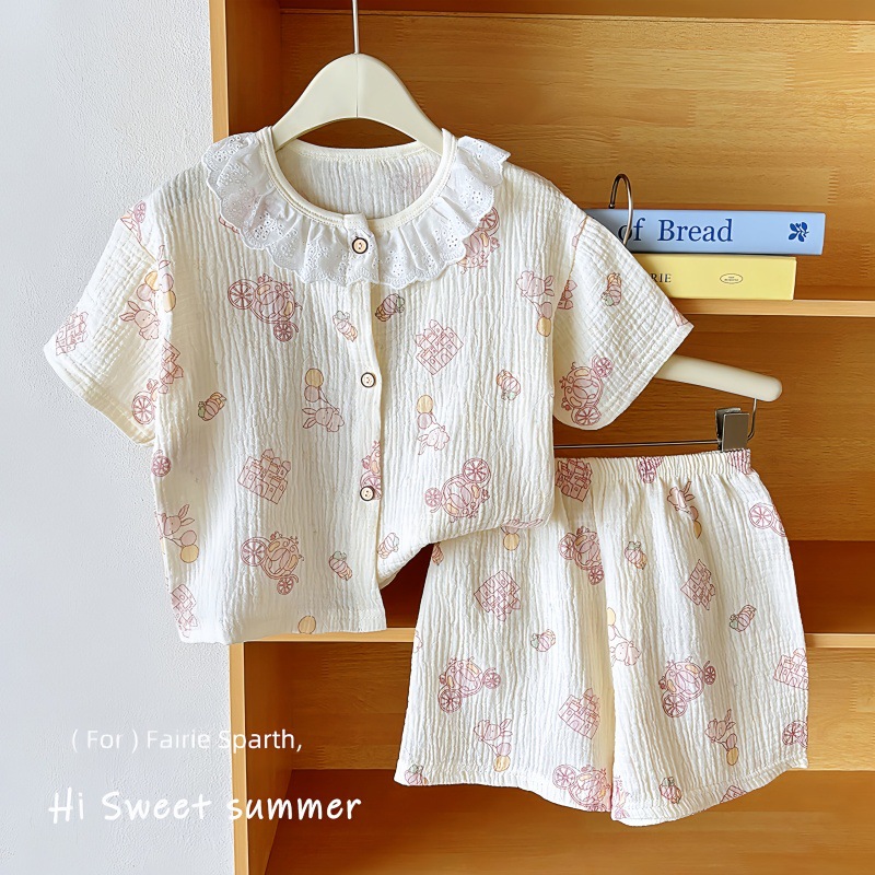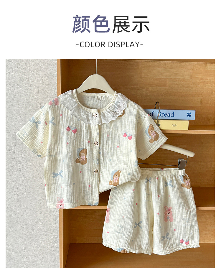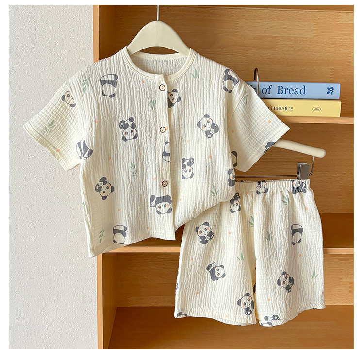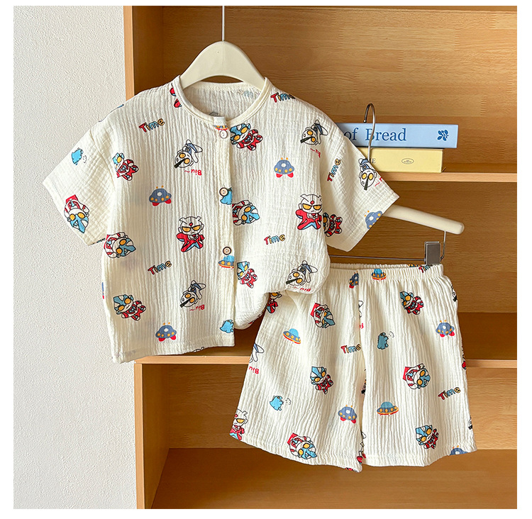 남아 및 여아용 아동복, 면 거즈 A형 반팔 양복, 유아용 얇은 반팔 잠옷, 여름 반팔 양복