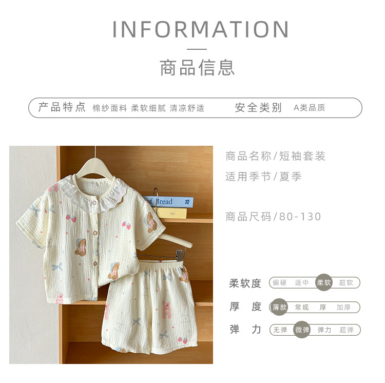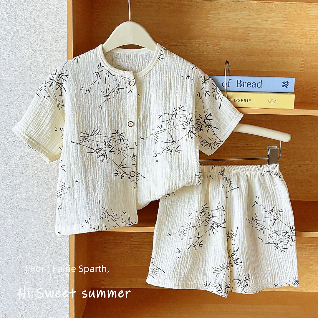 남아 및 여아용 아동복, 면 거즈 A형 반팔 양복, 유아용 얇은 반팔 잠옷, 여름 반팔 양복스토어 가기