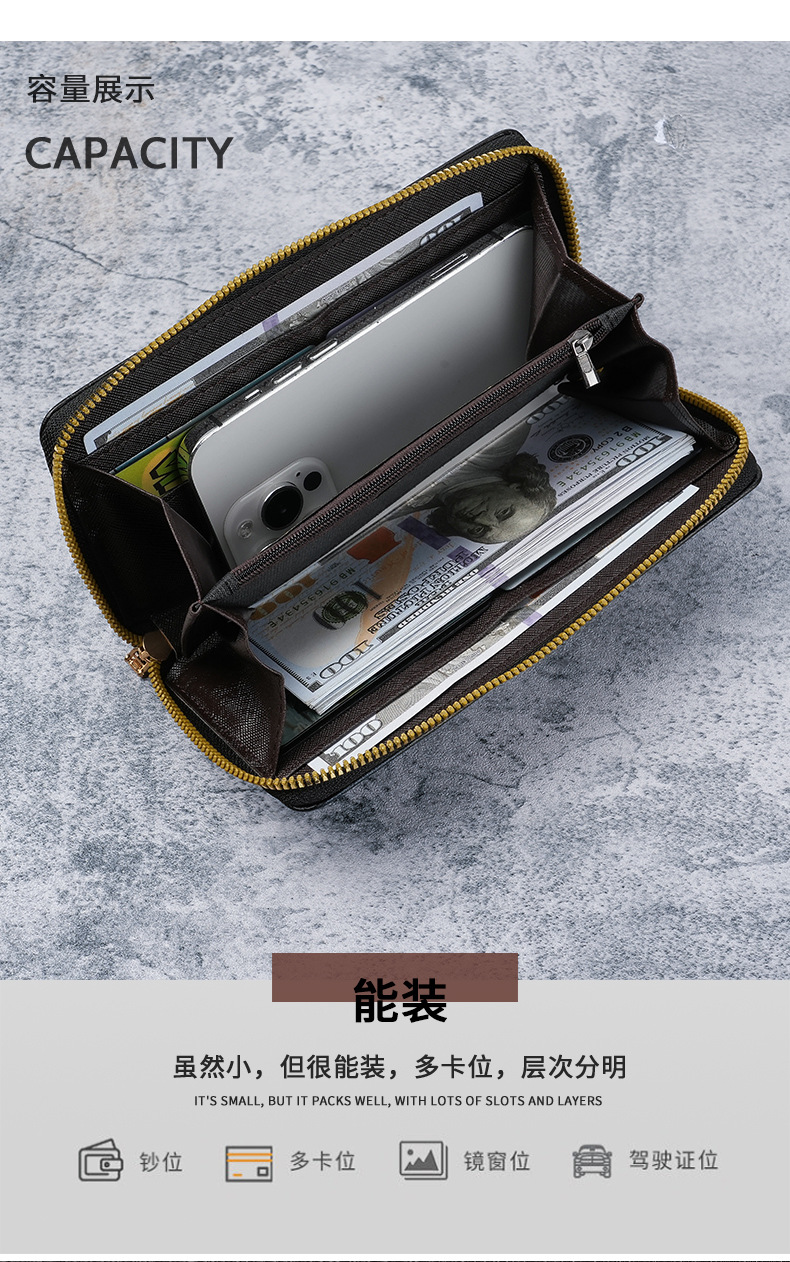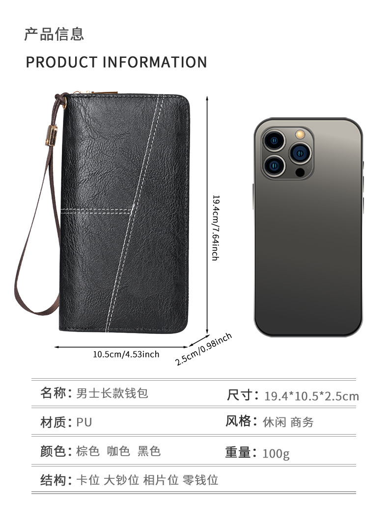 제조 업체 도매 남성용 지갑 긴 휴대 전화 가방 멀티 카드 슬롯 대용량 지퍼 지갑 휴대용 카드 홀더 남성용 지갑스토어 가기