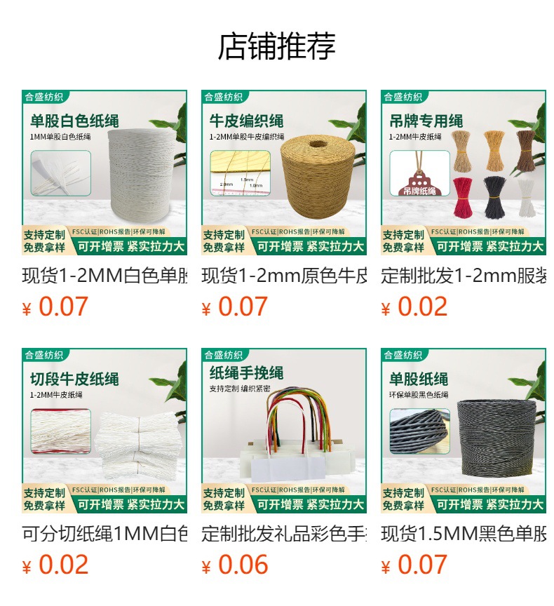 FSC 인증 단일 가죽 종이끈 친환경 묶음끈 전원 코드 묶음 선물 상자 포장끈 절단 가능 태그 끈스토어 가기