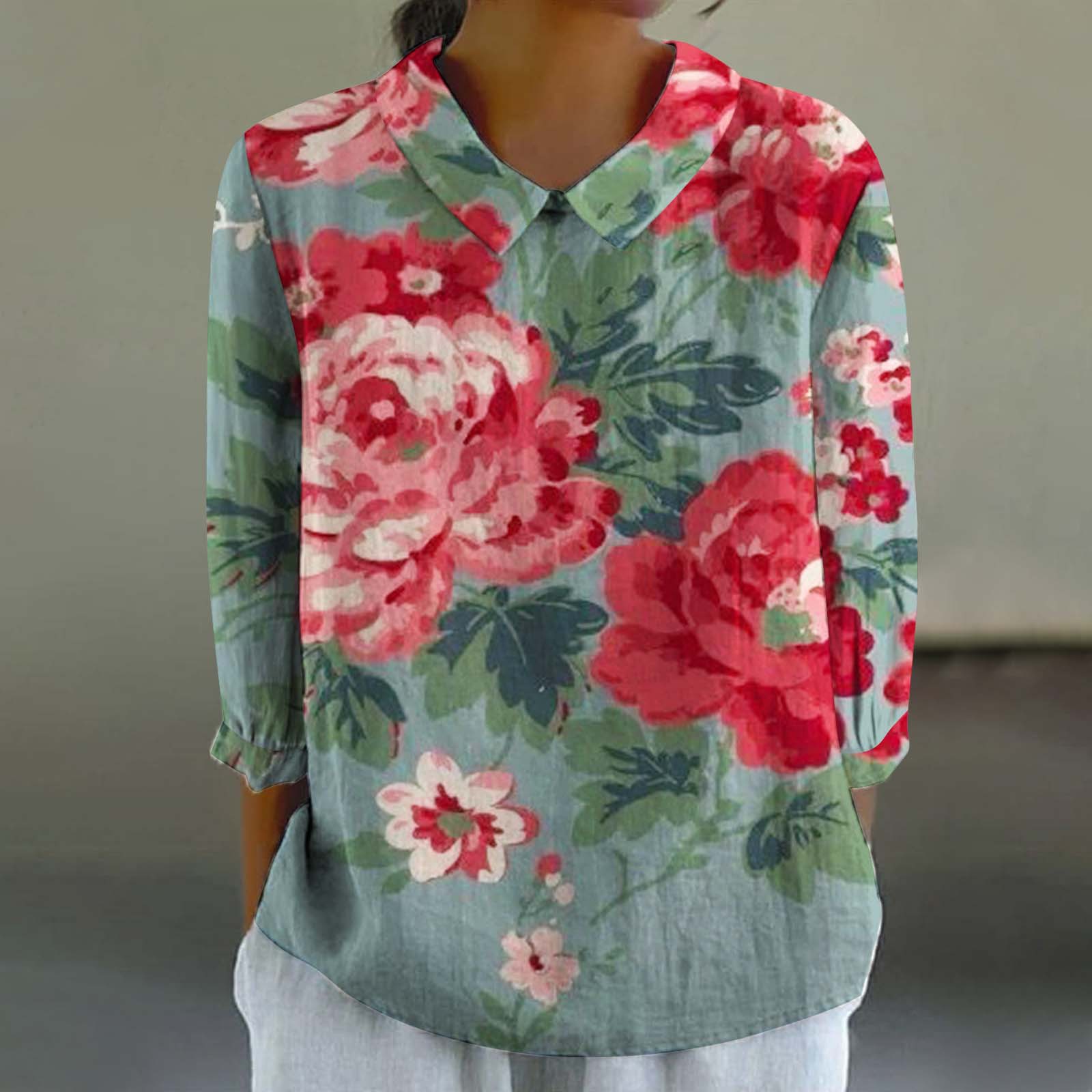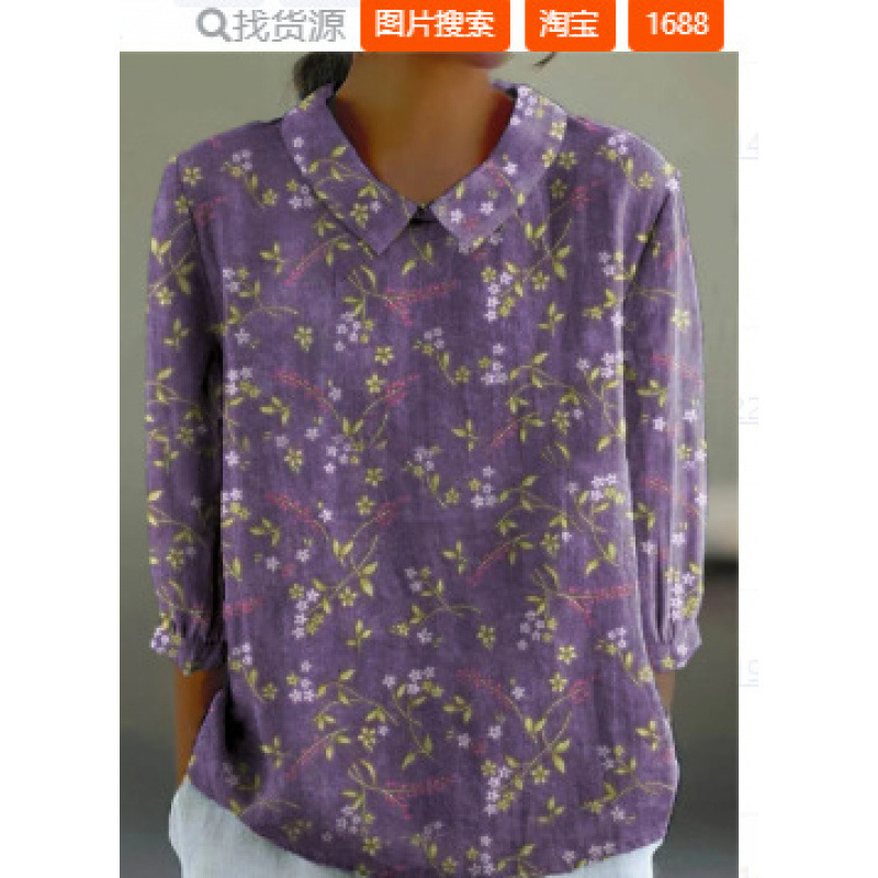 2024 크로스 보더 여름 독립 스테이션 새 셔츠 여성 창조적 인 복고풍 중국 스타일 꽃 프린트 셔츠스토어 가기