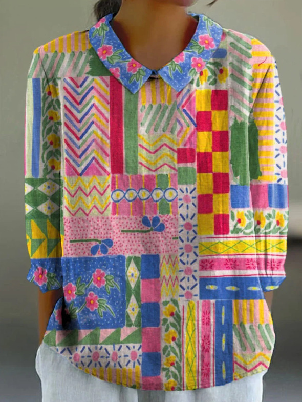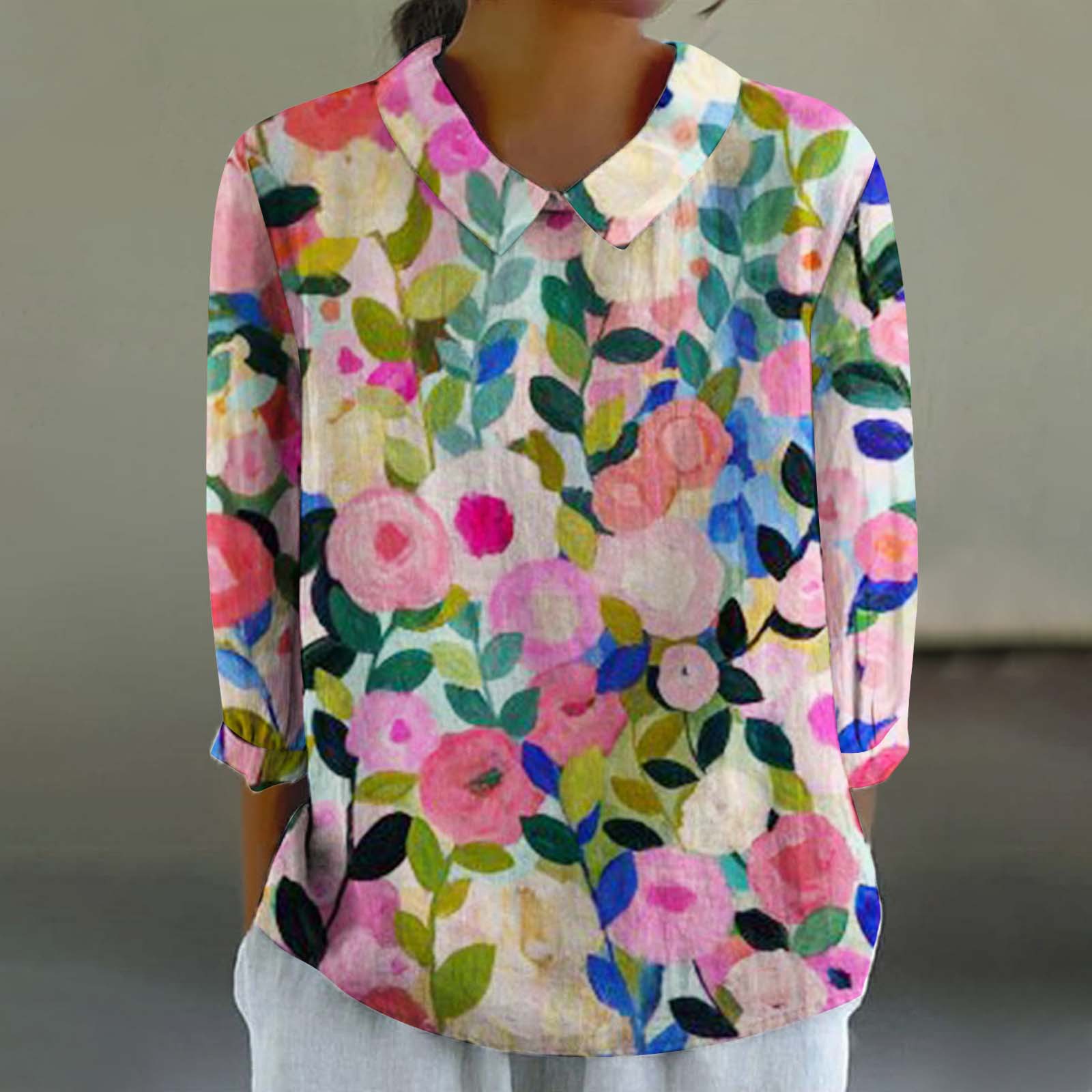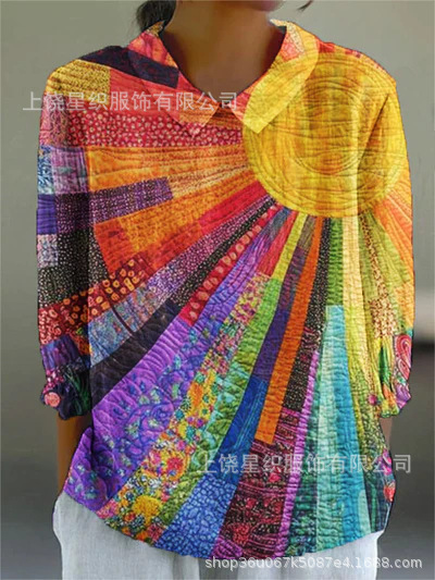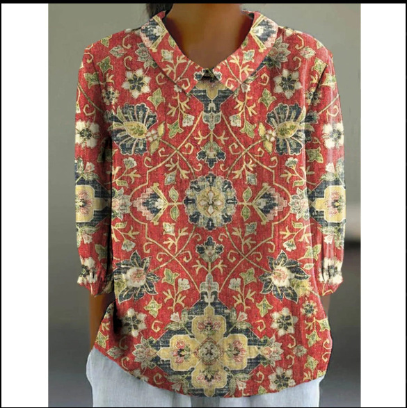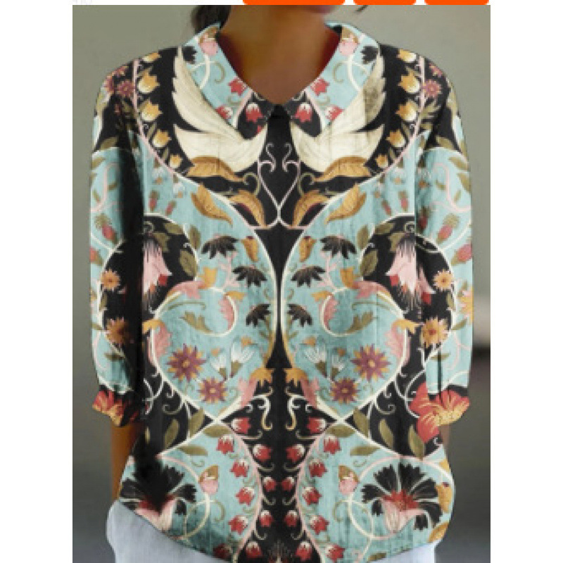 2024 크로스 보더 여름 독립 스테이션 새 셔츠 여성 창조적 인 복고풍 중국 스타일 꽃 프린트 셔츠