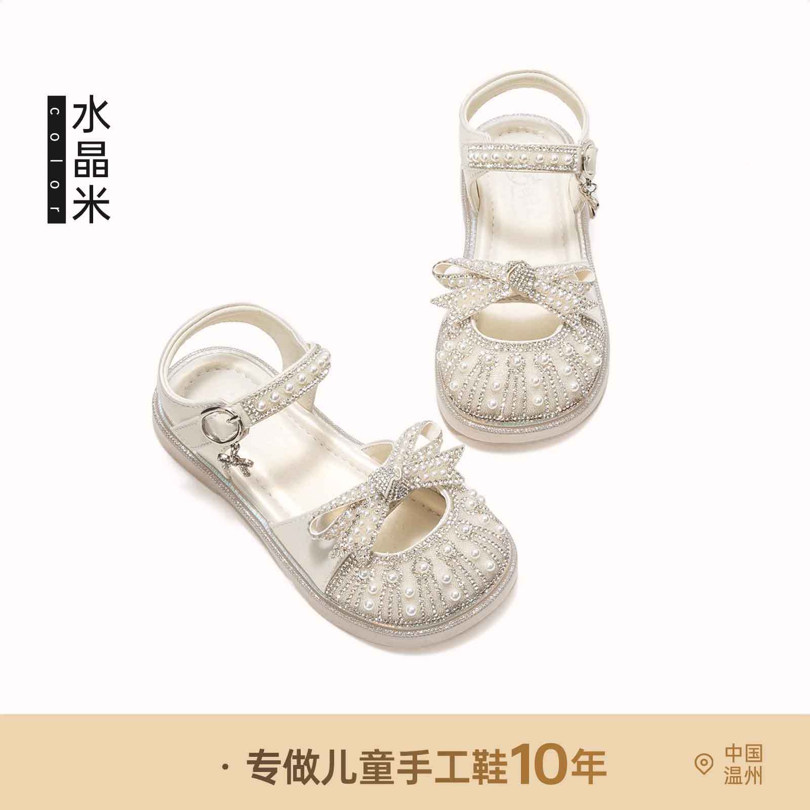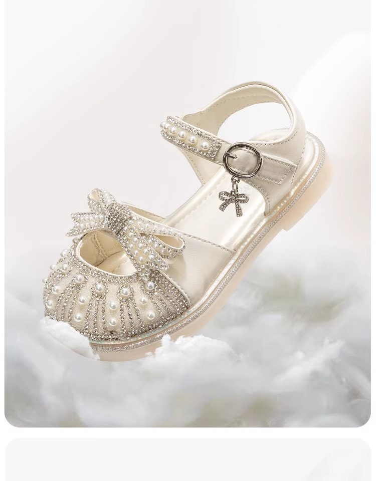 2025 새로운 스타일의 서양식 큰 어린이 해변 신발 플랫 아기 봄과 가을 여성의 여름 신발 공주 크리스탈 신발 소녀 샌들