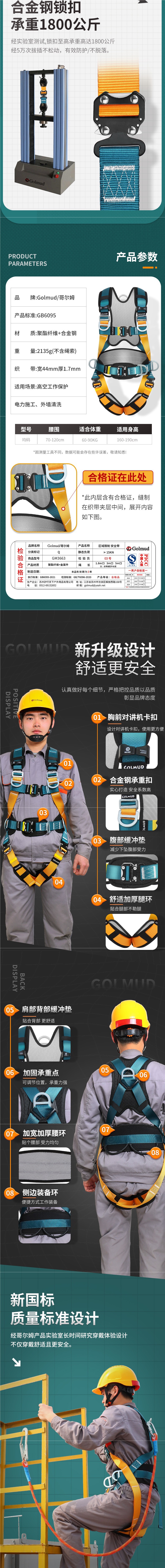 고공 작업용 골름 5점식 안전벨트, 이중후크 안전로프 세트, 전신형 국가표준 보험 풀세트스토어 가기