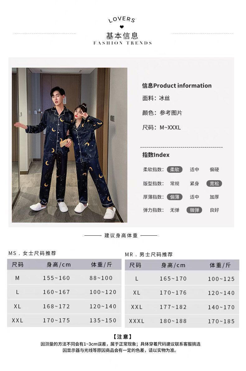 봄과 가을 여성용 한국 아이스 실크 커플 잠옷 긴팔 바지 남성과 여성을위한 모조 실크 실크 정장 홈웨어